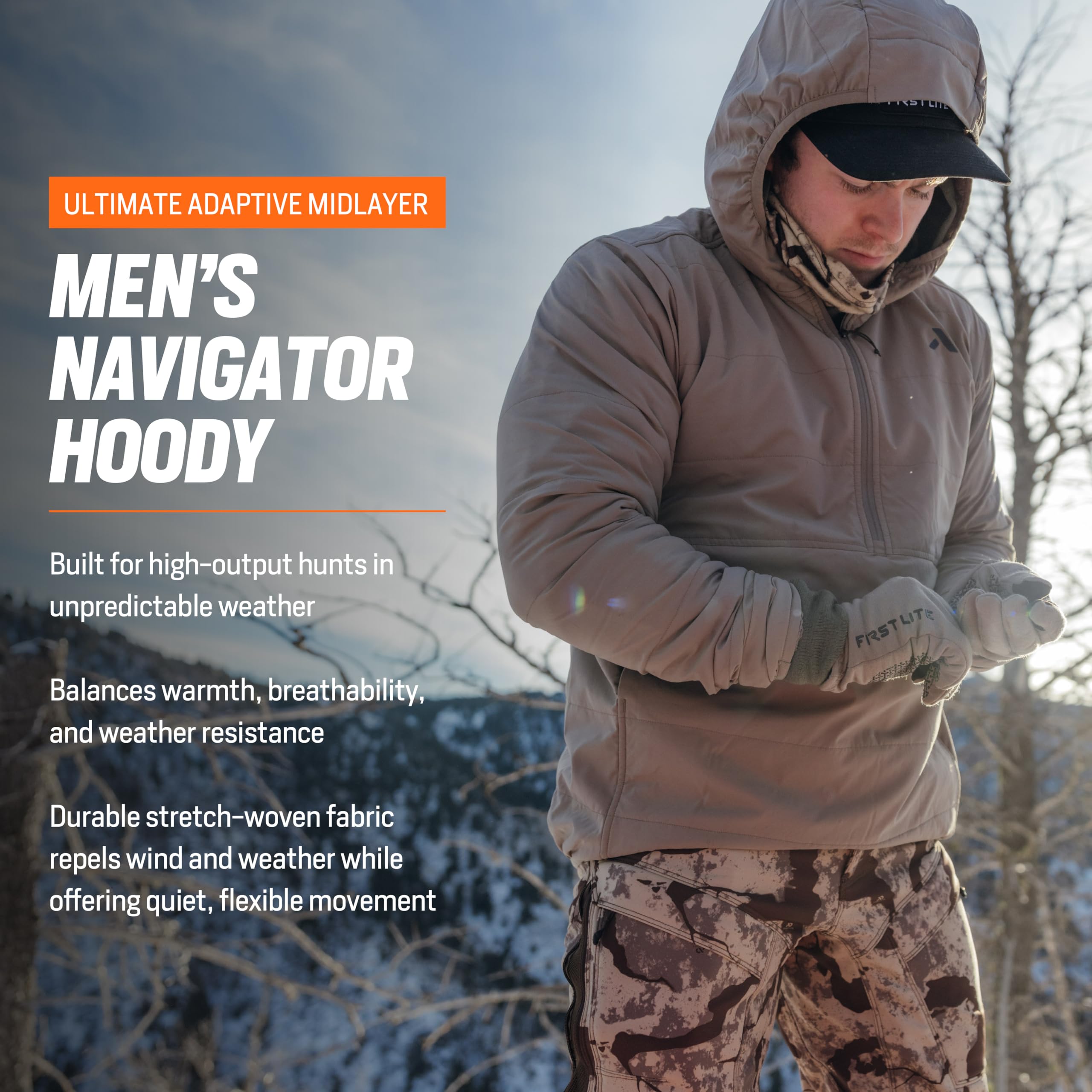 Engineered for those who demand both performance and style in the outdoors, the First Lite Men's Navigator Hoody in Walnut is the ultimate companion for your next adventure. Whether you're trekking through the backcountry, setting up for a hunt, or simply enjoying a brisk morning hike, this hoody is designed to keep you comfortable and protected. Its robust construction ensures you stay warm and shielded from the elements, while the thoughtfully designed hood and fit provide both coverage and freedom of movement. The Navigator Hoody is a reliable layer you'll reach for season after season, blending rugged durability with a classic, versatile look that transitions seamlessly from the trail to the town.