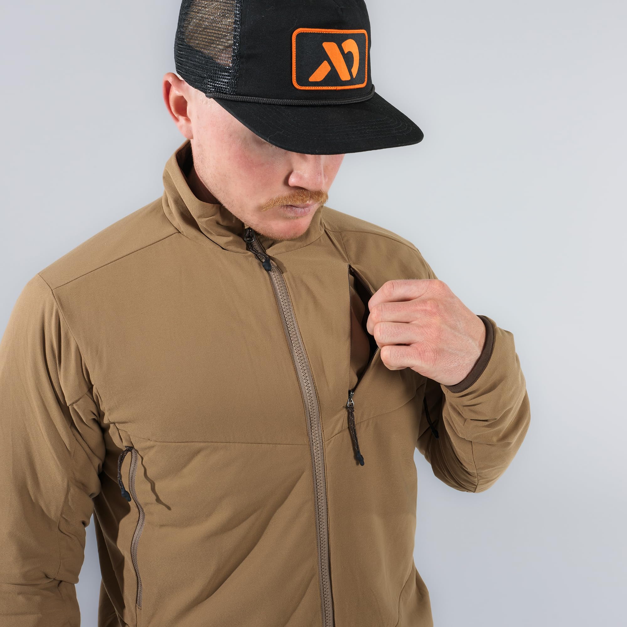 Engineered for the modern outdoorsman, the First Lite Men's Primer Puffy Jacket delivers the perfect balance of warmth, mobility, and rugged durability. Whether you're glassing for game at dawn, hiking rugged trails, or layering up for a frigid morning, this jacket is designed to keep you comfortable and agile. The Dry Earth color blends seamlessly with a variety of environments, making it a versatile choice for both the field and everyday wear. Its lightweight construction ensures you stay nimble, while the insulation traps heat to keep you comfortable in the cold. The full front zipper allows for quick layering and easy temperature regulation, making this jacket a reliable companion for any cold-weather adventure.