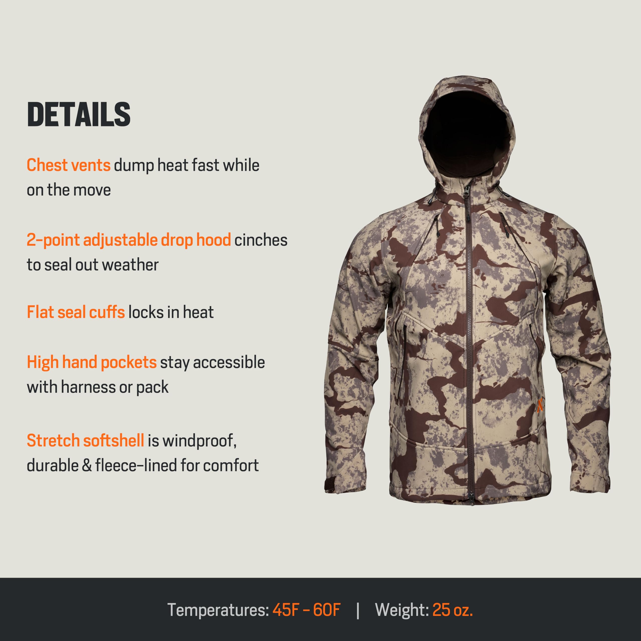 Engineered for the modern outdoorsman, the First Lite Men's Suppressor Soft Shell Jacket delivers the perfect blend of performance, comfort, and style for your next adventure. Designed to withstand the rigors of the wild, this jacket features advanced Suppressor technology, ensuring it stands up to the toughest conditions while maintaining a lightweight, flexible feel. The Cerca colorway offers a sleek, contemporary look that transitions seamlessly from the trail to the town. The various sizing options provide a relaxed, comfortable fit, making it easy to layer for changing weather. Whether you're hiking, hunting, or simply enjoying the outdoors, this jacket offers the protection and versatility you need to stay comfortable and look your best, no matter the weather.