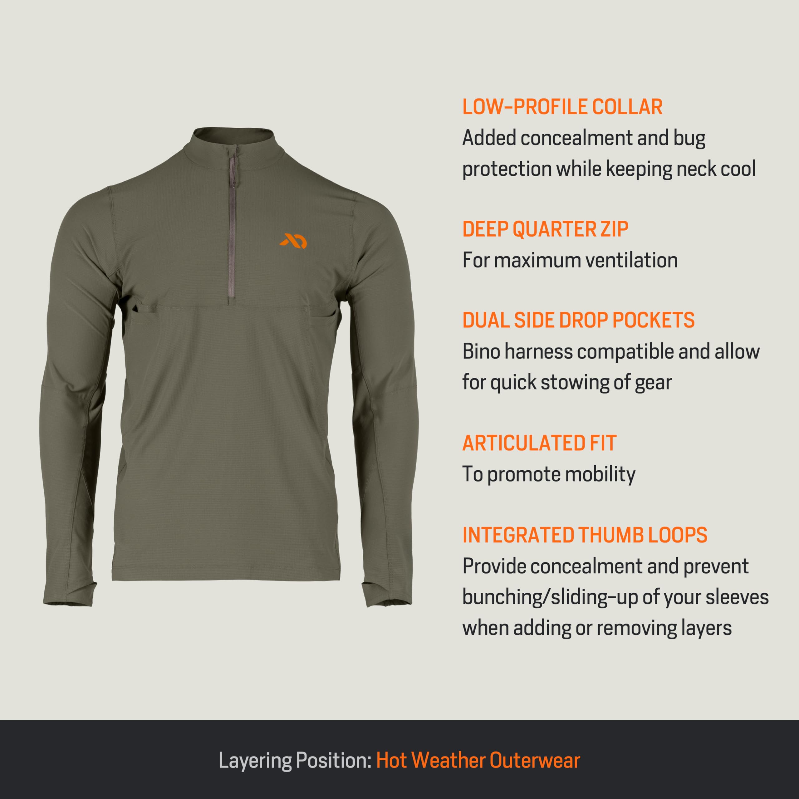 Engineered for those who demand both performance and style, the First Lite Men's Trace Quarter Zip in Conifer is the ultimate companion for your outdoor pursuits and everyday adventures. Its thoughtfully designed quarter zip construction allows for effortless layering, adapting to changing temperatures and activity levels. The Conifer green hue is inspired by the natural world, blending seamlessly into outdoor environments while offering a refined, rugged look for casual settings. The Trace Quarter Zip is crafted from a soft, breathable fabric, ensuring you stay comfortable and dry, whether you're hiking a mountain trail, setting up camp, or simply enjoying a weekend in town. The zippered collar provides customizable ventilation, letting you control your comfort in any condition. Built for versatility, this pullover is a reliable staple for any outdoor enthusiast or style-conscious explorer.