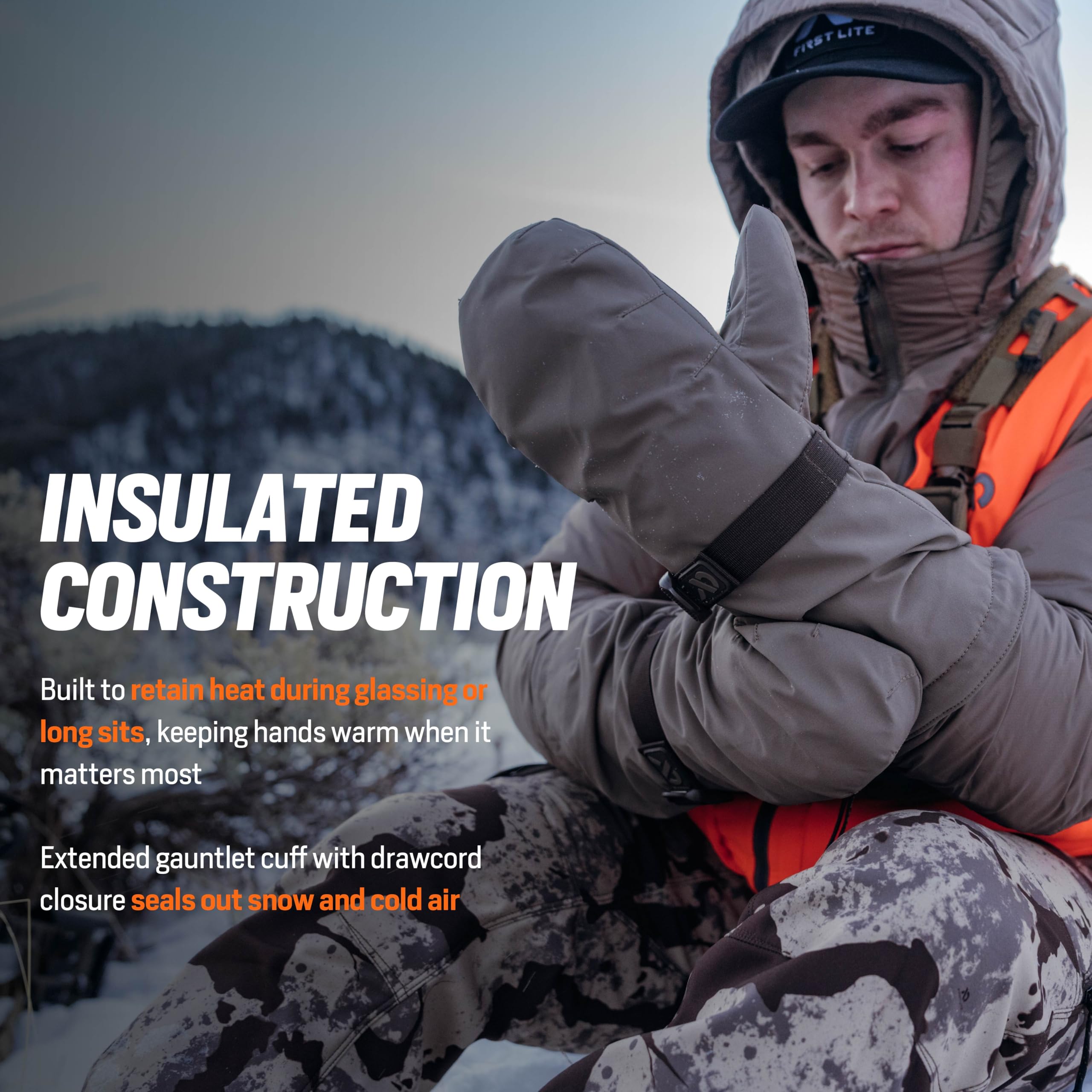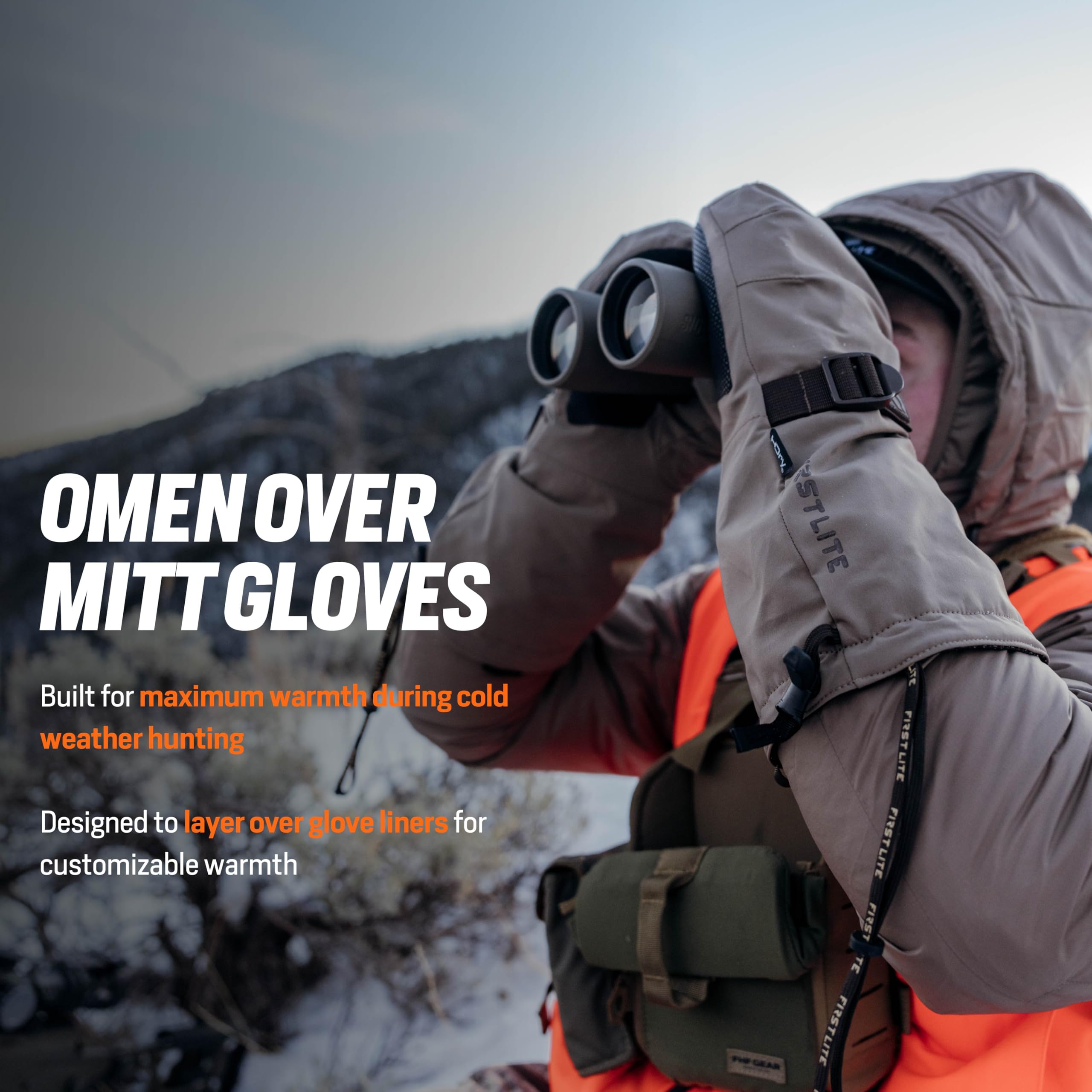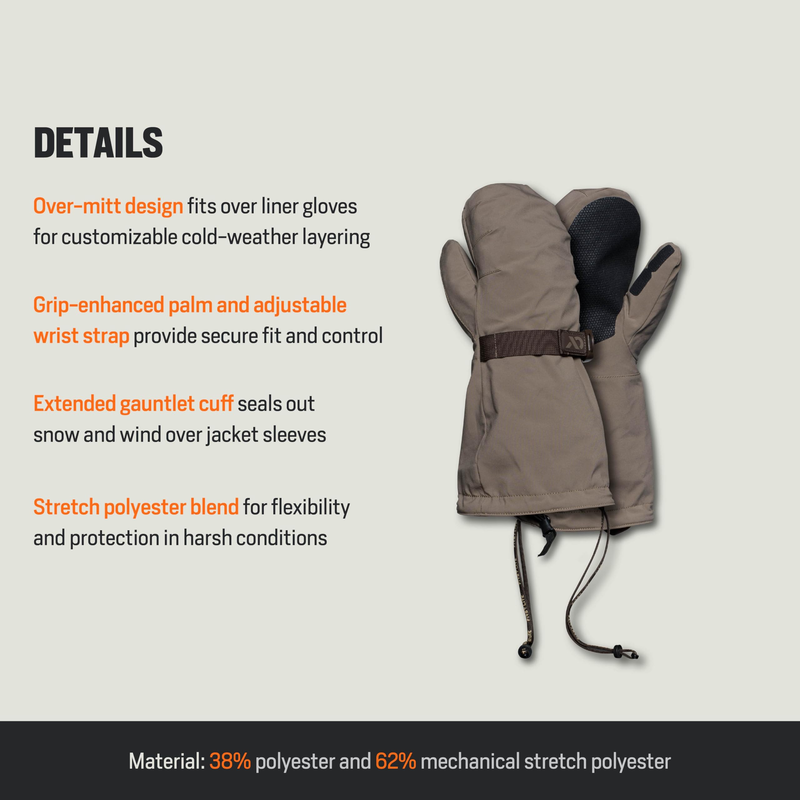 Engineered for those who refuse to let harsh weather slow them down, the First Lite Omen Over Mitt in Walnut is the ultimate companion for cold-weather pursuits. Designed to slip easily over your gloves, this over mitt delivers exceptional insulation, locking in warmth even in the most frigid conditions. The rugged Walnut color not only blends seamlessly with the natural environment, but also adds a touch of understated style to your outdoor gear. Built with a spacious fit, the Omen Over Mitt ensures your hands stay comfortable and agile, even during extended periods in the field. The advanced water-resistant and windproof construction shields your hands from the elements, making this mitt a must-have for hunters and outdoor enthusiasts who demand reliable protection and performance in the toughest weather.