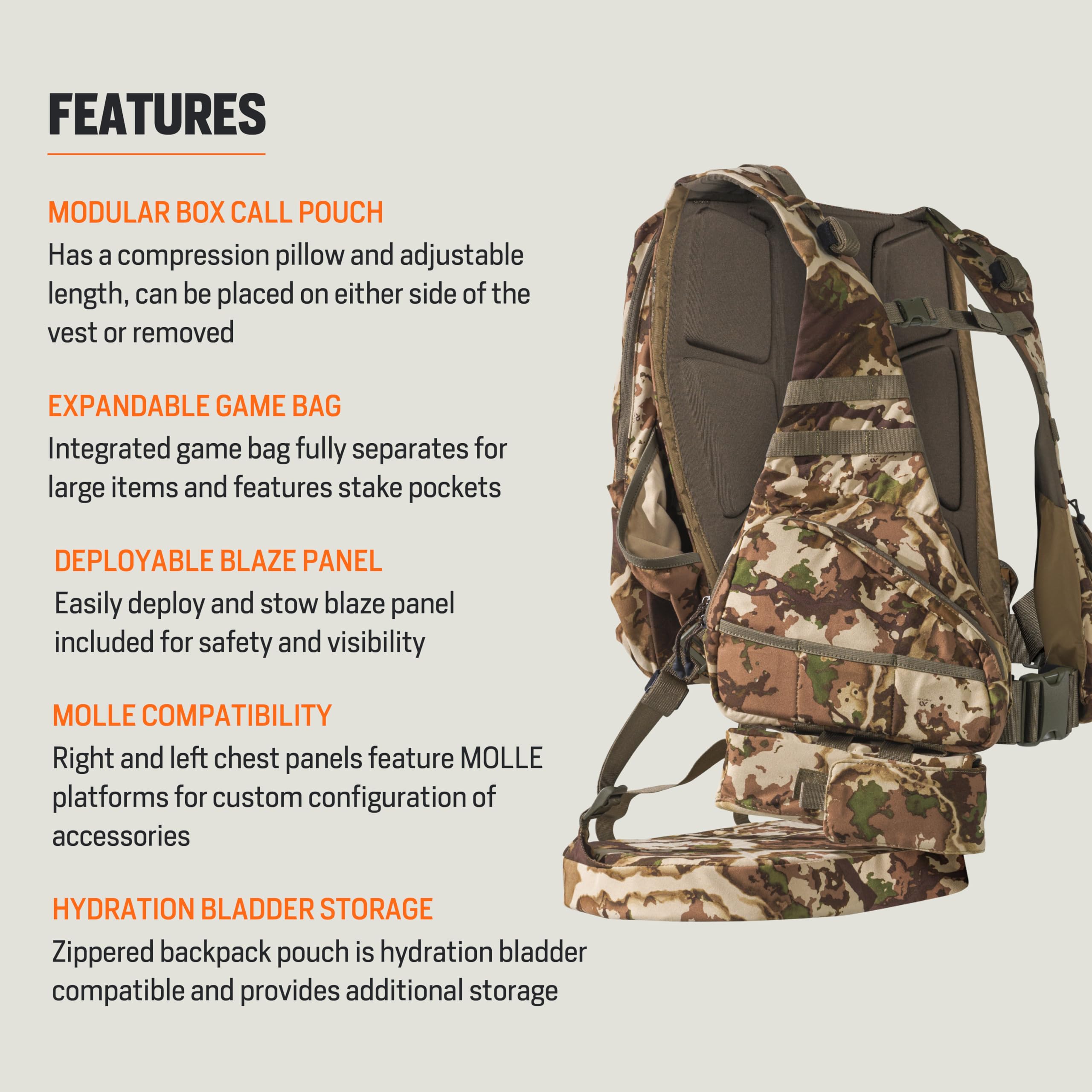 Designed for the dedicated turkey hunter, the First Lite Treeline Turkey Vest Fusion OS FTLSPFUOS delivers the perfect blend of agility, comfort, and tactical advantage. Its streamlined, lightweight construction ensures you can move swiftly and quietly through the woods, while the Fusion OS camo pattern expertly breaks up your outline for unmatched concealment. Thoughtfully engineered for the demands of the hunt, the vest features a durable, breathable fabric that keeps you cool and comfortable, even during the longest sits. Ample, strategically placed pockets keep your calls, shells, and other essentials organized and within easy reach, so you can focus on the hunt, not your gear. With a fully adjustable fit, the Treeline Turkey Vest adapts to your body and your layering needs, making it a versatile choice for any turkey season.