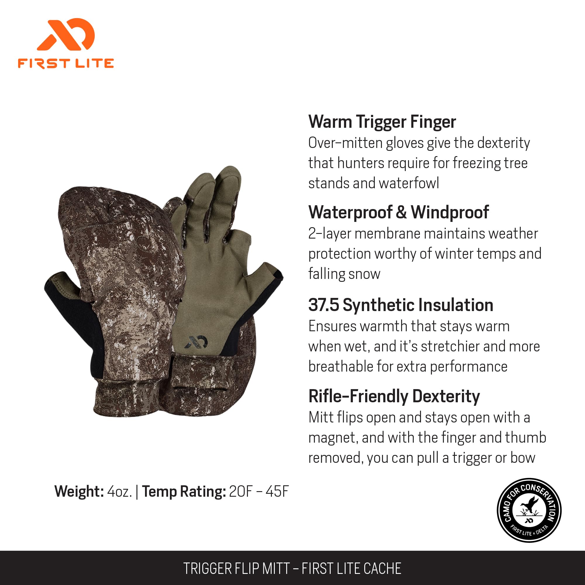 Engineered for those who demand reliable performance in the harshest conditions, the First Lite Trigger Mitt in Darkwater is the ultimate solution for cold-weather shooting and hunting. Its innovative trigger mitt design ensures your trigger finger is always ready and offers a comfortable, unrestricted fit for extended wear. Crafted from premium materials, this mitt delivers exceptional warmth and resilience, making it a trusted companion for long days in the field. The Darkwater colorway is purpose-built for those who value subtlety and low visibility, blending seamlessly into a variety of outdoor environments. Whether you're glassing a distant ridge or waiting in a blind, this mitt is your go-to for warmth, dexterity, and reliable protection in the coldest conditions.