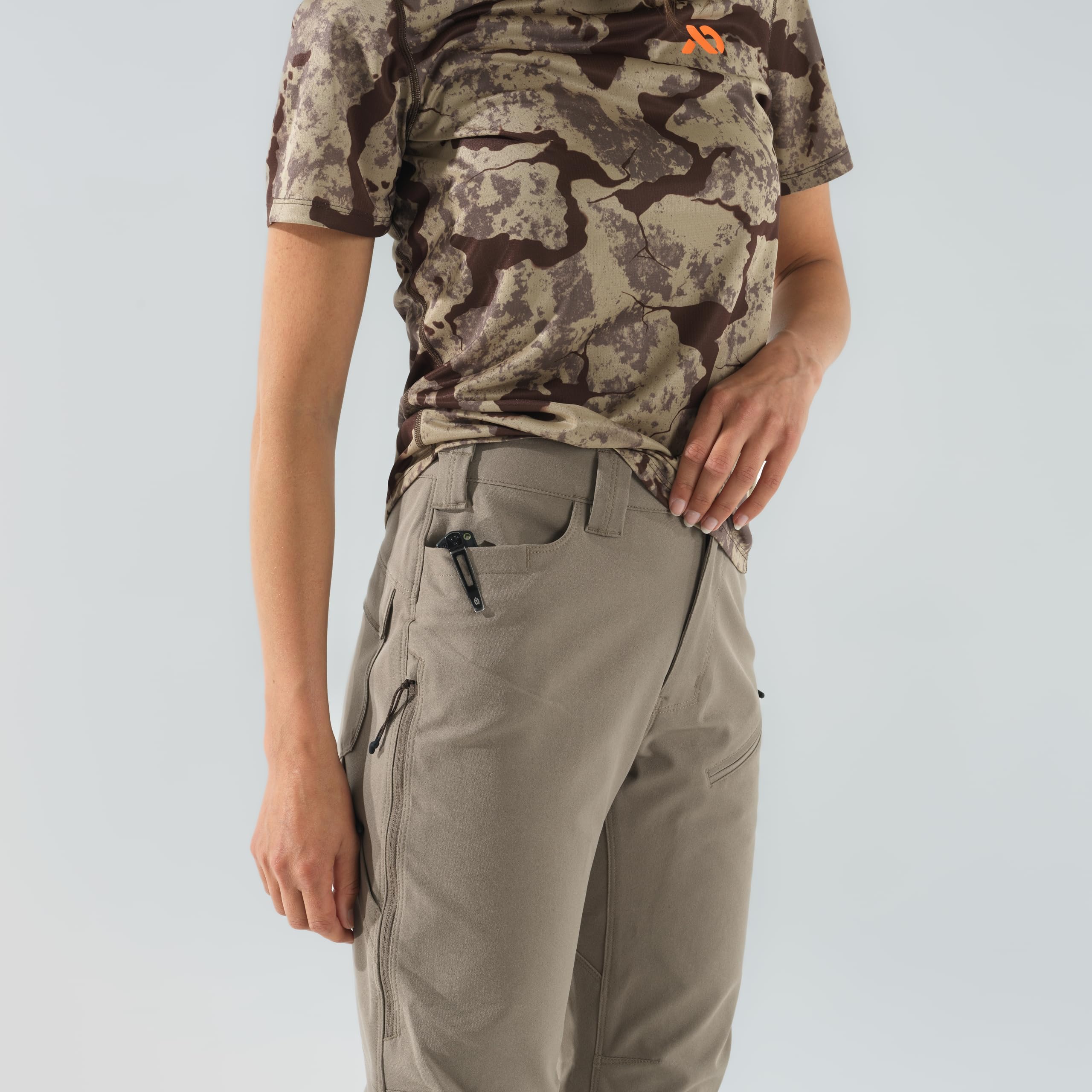 Experience the perfect blend of style, durability, and versatility with the First Lite Women's 308 Pant in Walnut. Designed with the active woman in mind, these pants offer a tailored, comfortable fit that moves with you, whether you're hiking rugged trails, setting up camp, or running errands in town. The rugged construction ensures these pants stand up to the demands of the outdoors, while the thoughtfully placed pockets keep your essentials close at hand. The Walnut color adds a touch of sophistication, making these pants a seamless addition to your everyday and adventure wardrobe. Enjoy the confidence of a pant that's as functional as it is fashionable, ready to keep up with your dynamic lifestyle.