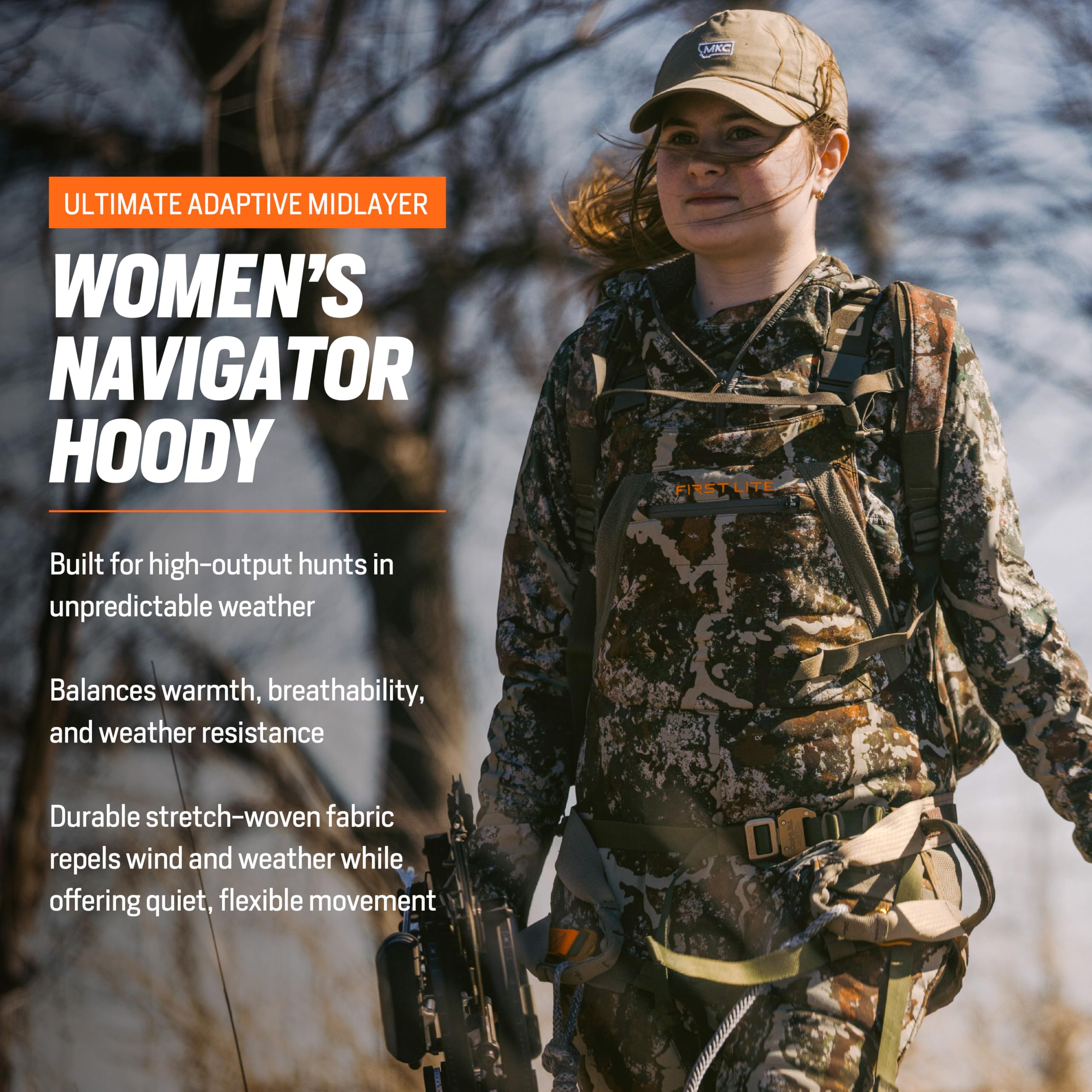 Engineered for women who demand performance and versatility in the outdoors, the First Lite Women's Navigator Hoody in Specter color is the perfect companion for your next adventure. Whether you're hiking, scouting, or layering for a chilly morning, this hoody is designed to keep you comfortable and protected. The lightweight, breathable fabric ensures you stay cool and dry, while the integrated hood offers extra warmth and shields you from the elements. The Specter colorway blends seamlessly into a variety of natural environments, making it a smart choice for hunters and outdoor enthusiasts alike. With a fit designed for freedom of movement and easy layering, this hoody is a must-have for your outdoor wardrobe.