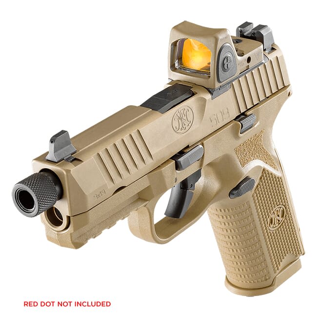 FN America’s FN 509 Tactical is an upgraded version of FN America’s popular FN 509 semi-automatic striker fired handgun. The FN 509 Tactical adds several features to the all-ready feature rich FN 509 series. Most notably the fact that it is compatible with and ships with two 24 round magazines (and one 17 round magazine). The FN 509 Tactical also features a threaded barrel (1/2"x28 tpi) making it ready for a suppressor or compensator right out the box, additionally these handguns come standard with suppressor height night sights. The FN 509 is the first of FN America’s handguns to use the patented FN Optics Mounting System, allowing you easily attach a wide variety of low profile reflex sights to the FN 509 Tactical.
