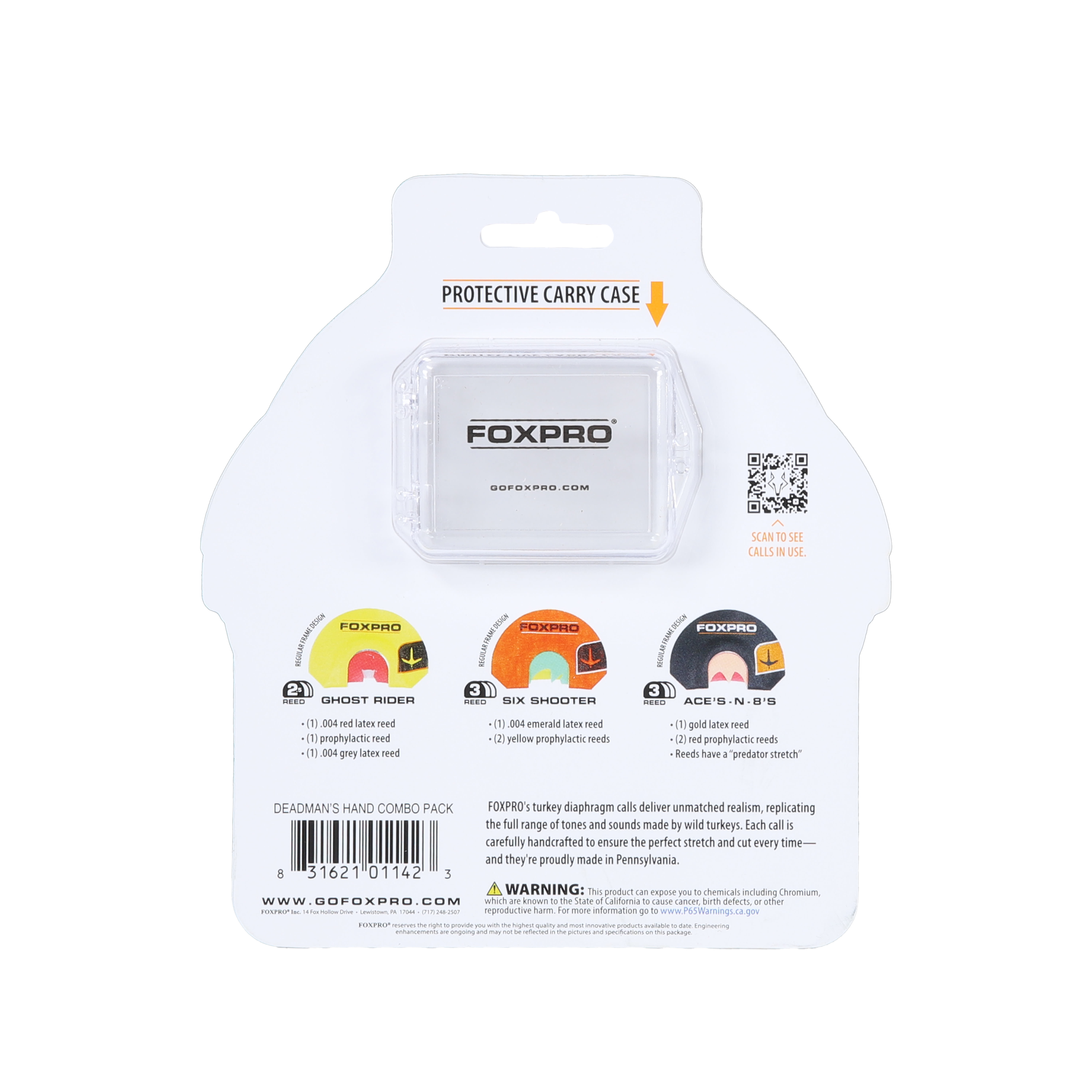 The FOXPRO Deadman’s Hand Combo is a versatile set of diaphragm predator calls designed to produce realistic coyote howls, barks, pup distress, and prey sounds. Perfect for predator hunting, this combo includes three diaphragm mouth calls with different reed configurations, allowing hunters to mimic a variety of sounds in the field. Compact and lightweight, these calls are easy to carry and use, providing reliable performance for calling predators during any hunting scenario.