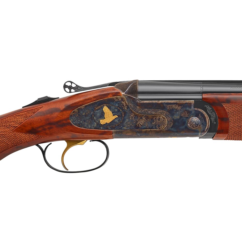 Franchi’s Instinct Sideplate could be considered a modern classic, and honors the traditional under/over shotgun design by combining classic aesthetics with the latest innovations. Designed to be an extension of the shooter, the Instinct Sideplate is easy to shoulder with an overall design perfectly balanced for smooth swinging action when aiming at fast-moving targets. The Sideplate’s receiver is a perfect example of the fine Italian craftsmanship found on all of Franchi’s long guns. It features a color case hardening – not only does this provide a vintage appearance, it also gives the receiver better durability. In addition to the attractive case-hardening, the receiver also sports a beautifully engraved game scene with gold bird inlays and scroll etchings. Adding to the Sideplate’s visual appeal is its Prince of Wales stock and Schnabel fore-end. Both of which are made from the finest AA-grade Turkish walnut and are expertly fitted to provide excellent ergonomics. Other features of the Instinct Sideplate include a vented rib and barrels, a red fiber optic front sight, and gold inlays on the trigger.