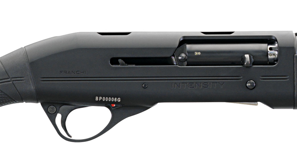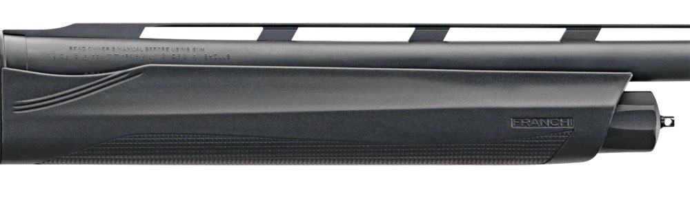 This Franchi 12 gauge shotgun with black synthetic stock and a 28" barrel has an inertia driven operating system, fiber optic red-bar front sight, and is balanced for quick shots at fast-flying waterfowl.