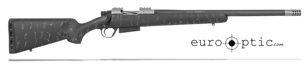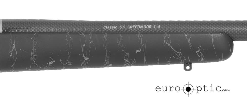 This 6.5 Creedmoor Christensen Arms Carbon Classic Rifle features a removable titanium muzzle brake, 20" barrel with 1:8", black tier 2 fiber glass stock with grey webbing, timney trigger, and drop box magazine.