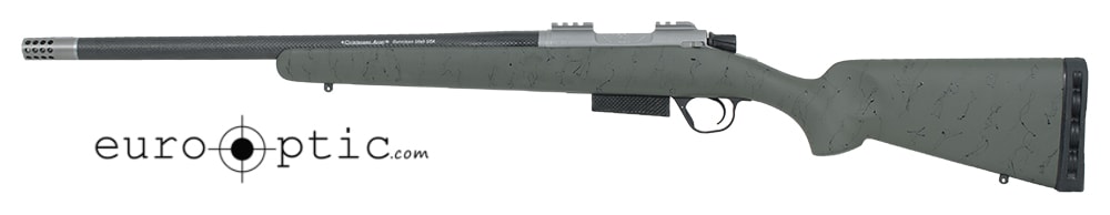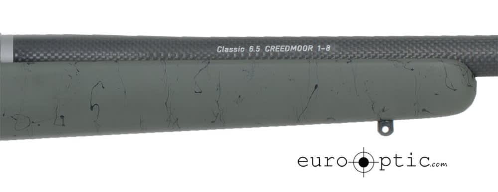 This 6.5 Creedmoor Christensen Arms Carbon Classic Rifle features a removable titanium muzzle brake, 20" barrel with 1:8", green tier 2 fiber glass stock with black webbing, timney trigger, and drop box magazine.
