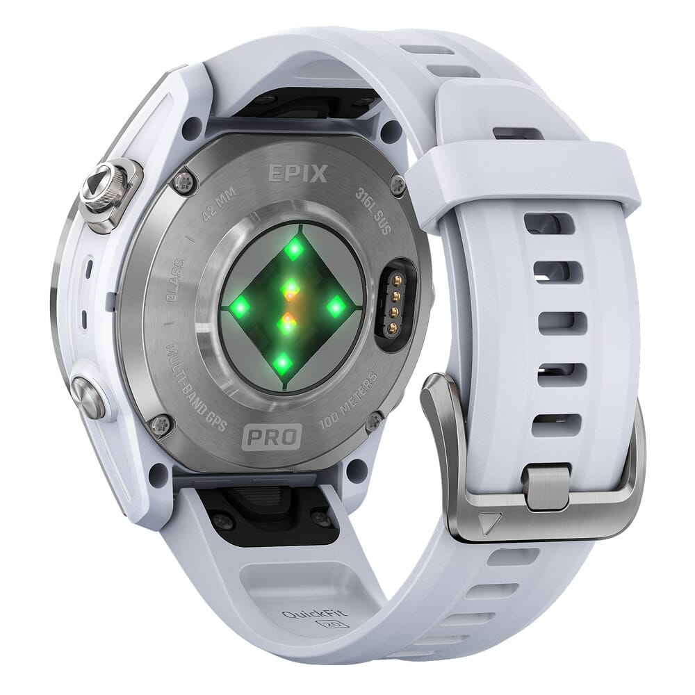 Garmin delivers the ultimate high performance smartwatch with the epix Pro. As the latest addition to the epix smartwatch line, the epix Pro is built to withstand the elements, and comes packed with new and advanced features. One of the most notable improvements is an remarkably long battery life of 31 days giving the user weeks – not hours – of battery life, making the epix Pro ideal for hunting, camping, and other adventures off the grid. The epix Pro’s navigational abilities have also been optimized with an array of map and GPS based features. The new Up Ahead Map Integration provides at-a-glance awareness for selected POI checkpoints ahead now overlayed on the map, and the new Outdoor Maps+ offers premium mapping content, such as satellite imagery and enhanced topographic maps, downloaded directly to your watch (subscription required). Adding to your navigation experience, the new Relief Shading helps you build a mental picture of, and better understand, the terrain - ultimately helping you make important navigation decisions while you're out on the trails. Other improvements include health based features to elevate your physical performance. The Hill Score allows you to measure your capability for running uphill and elevate your progress over time based on your VO2 max and training history. The new Endurance Score measures your ability to sustain prolonged efforts and combine training data from all your athletic pursuits to help you understand how training impacts your overall endurance. This dynamic measurement uses your VO2 max, short-term/long-term training loads and other factors to gauge your fitness progress beyond just VO2 max. Furthermore, the epix Pro features an improved AMOLED display that provides a bright, vibrant image even under bright sunlight, and a built-in flashlight allows you to find your way in the dark.