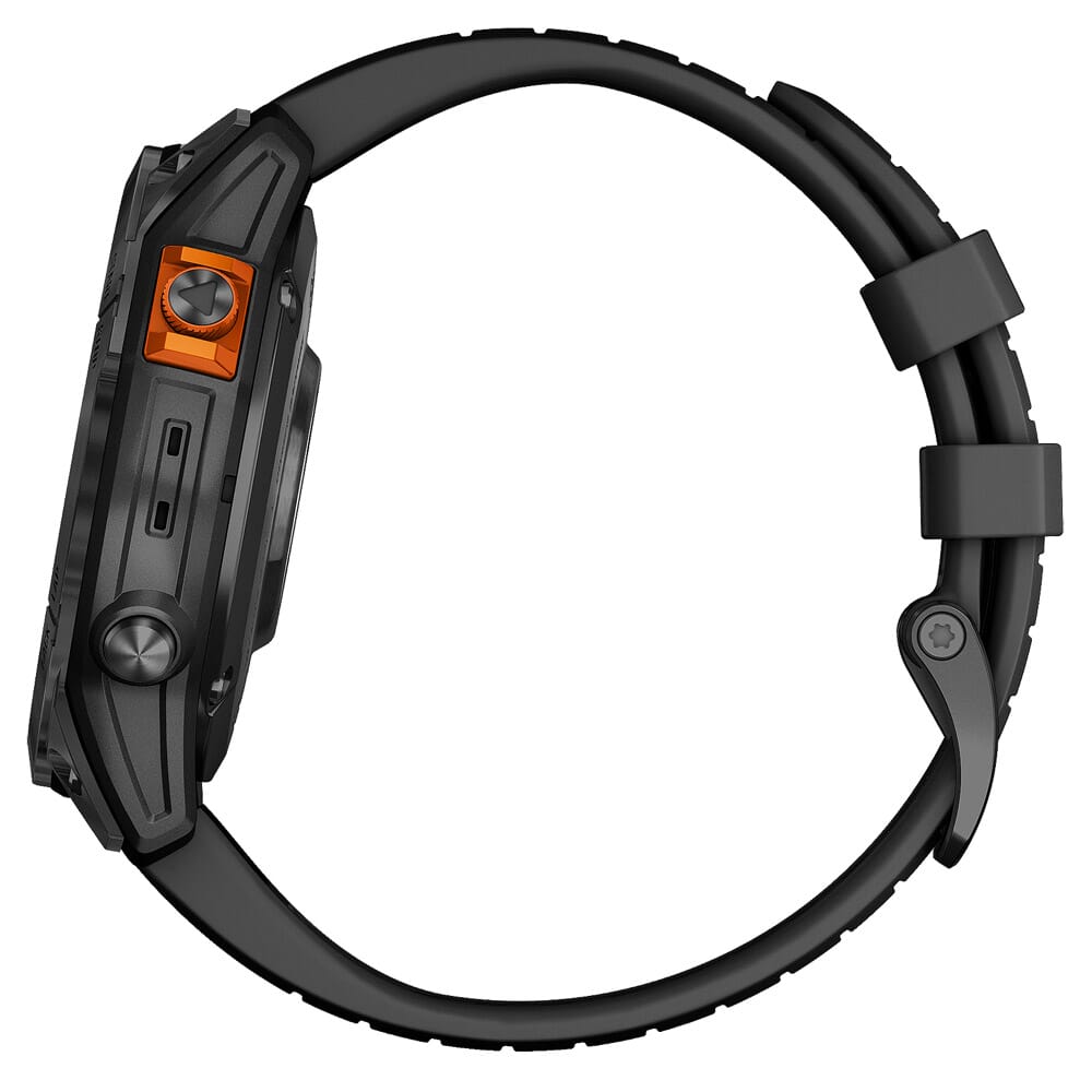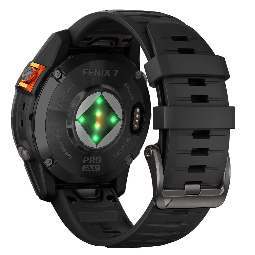 The fenix 7 Pro was designed for individuals with active outdoor lifestyles, and comes packed with Garmin exclusive features to give you the most out of your workout or activity. To ensure high performance in the worst possible conditions, the fenix 7 Pro was tested to meet U.S. Military standards for thermal, shock, and water resistance. Its durability is perfectly matched by its long battery life, giving users up to 22 days of power on a single charge thanks to an integrated solar panel. The controls are composed of push-buttons and touchscreen combination – allowing for quick, responsive access in virtually any environment. Other features of the fenix 7 Pro include a wide array of biometric sensors and health centric features to monitor your body’s performance throughout the day. These sensors track heart rate, oxygen absorption, stress levels, hydration, and respiration. Other health monitoring functions include sleep monitoring, stress monitoring, and Body Battery Energy Monitoring. For the activities that take you off the beaten path, the fenix 7 Pro comes standard with advanced navigational features. The Satiq technology provides excellent positional accuracy while preserving battery life, and downloadable TopoActive maps provide detailed topographical information. The Up Ahead features provides at-a-glance awareness for selected POI checkpoints, and Round-Trip Routing allows users to enter how far they want to go and receive suggested routes to bring them back to their starting point. In addition, the fenix 7 Pro comes pre-loaded with sport and outdoor themed apps such as Backcountry Ski apps, Climbing apps, and animated workouts.