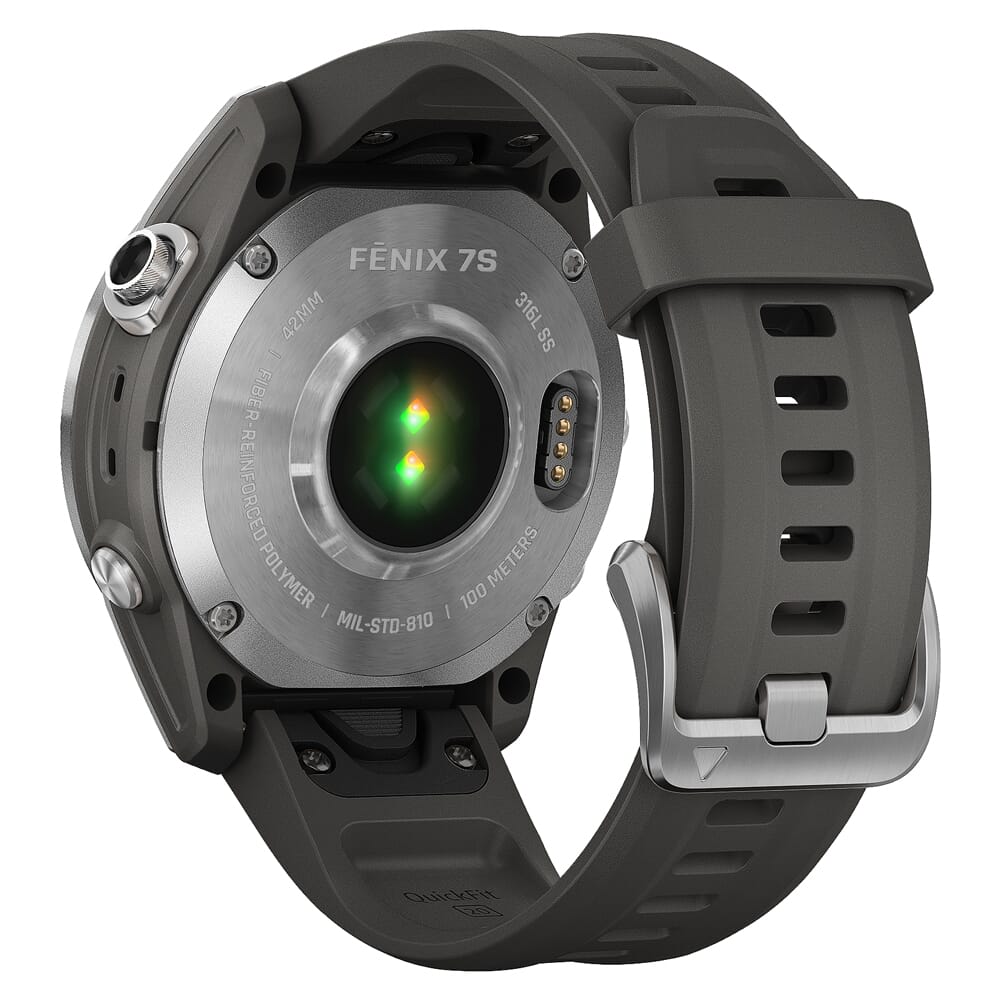 The fenix 7S was designed for individuals with active outdoor lifestyles, and comes packed with Garmin exclusive features to give you the most out of your workout or activity. To ensure high performance in the worst possible conditions, the fenix 7S was tested to meet U.S. Military standards for thermal, shock, and water resistance. The controls are composed of a push-button and touchscreen combination – allowing for quick, responsive access in virtually any environment. Other features of the fenix 7S include a wide array of biometric sensors to monitor your body’s performance throughout the day. These sensors track heart rate, oxygen absorption, stress levels, hydration, and respiration. For the activities that take you off the beaten path, the fenix 7S comes standard with advanced navigational apps. Multi-GNSS support provides access to GPS, GLONASS, and Galileo satellite systems for better navigational accuracy than GPS alone. In addition, the fenix 7S comes pre-loaded with sport and outdoor themed apps such as Backcountry Ski apps, Climbing apps, and animated workouts.