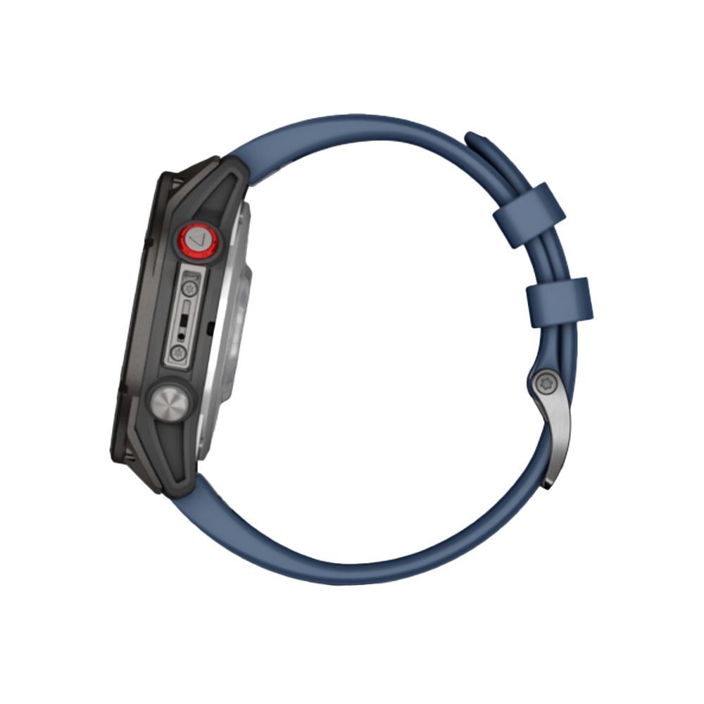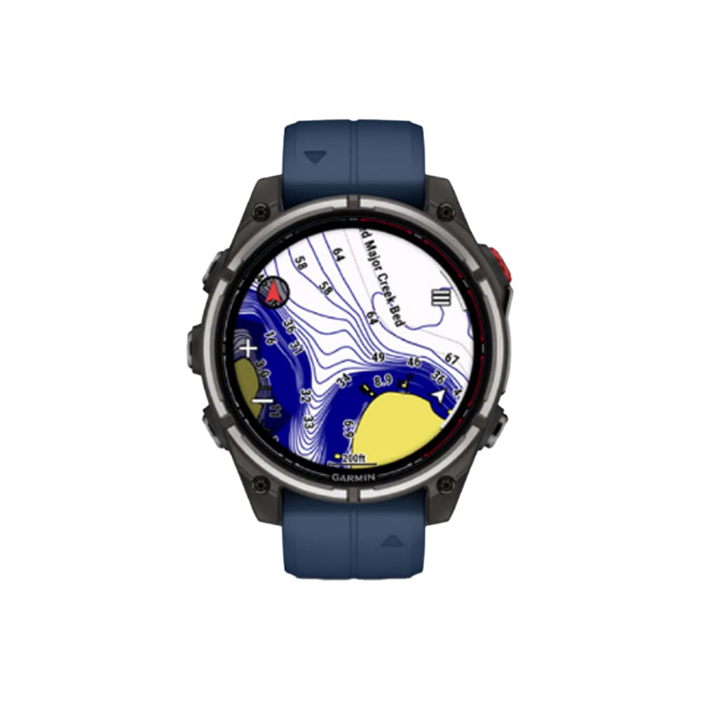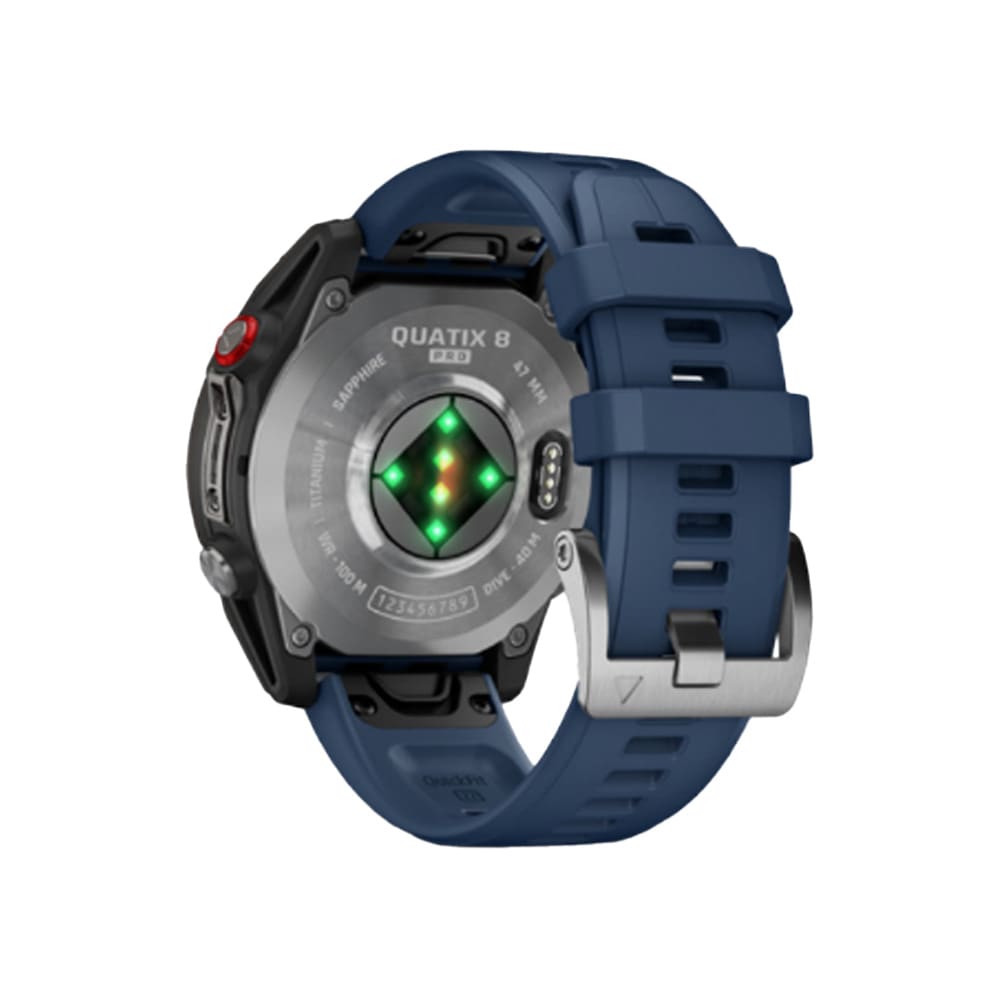 The Garmin Quatix 8 Pro 47mm LTE AMOLED Sapphire Nautical Smartwatch with Captain Blue silicone band is a premium marine‑focused smartwatch built to handle life on and off the water. It features a rugged 47mm fiber‑reinforced polymer case with a titanium bezel and sapphire crystal lens, a bright 1.4‑inch AMOLED display, and LTE + inReach satellite connectivity for two‑way messaging, location sharing, and emergency SOS capabilities without a phone. The watch offers advanced marine tools including boat mode with vessel management, autopilot control, and real‑time data streaming, plus comprehensive health and activity tracking, built‑in GPS, up to 15 days of battery life in smartwatch mode, and robust dive‑rated construction with water resistance to 10 ATM. It also includes a speaker and microphone for calls and voice commands, LED flashlight functionality, Garmin Pay contactless payments, and ample storage for maps, music, and apps, making it an all‑in‑one companion for seafarers and adventurers alike.