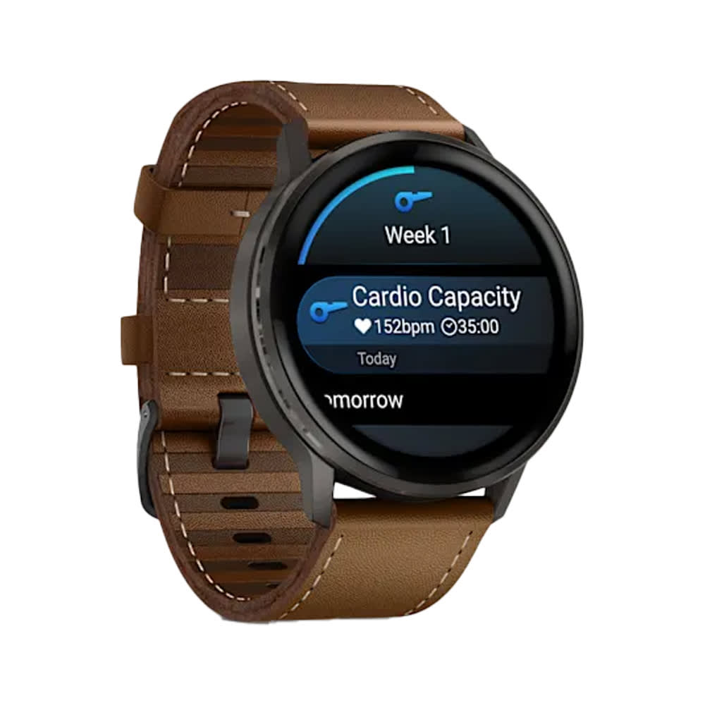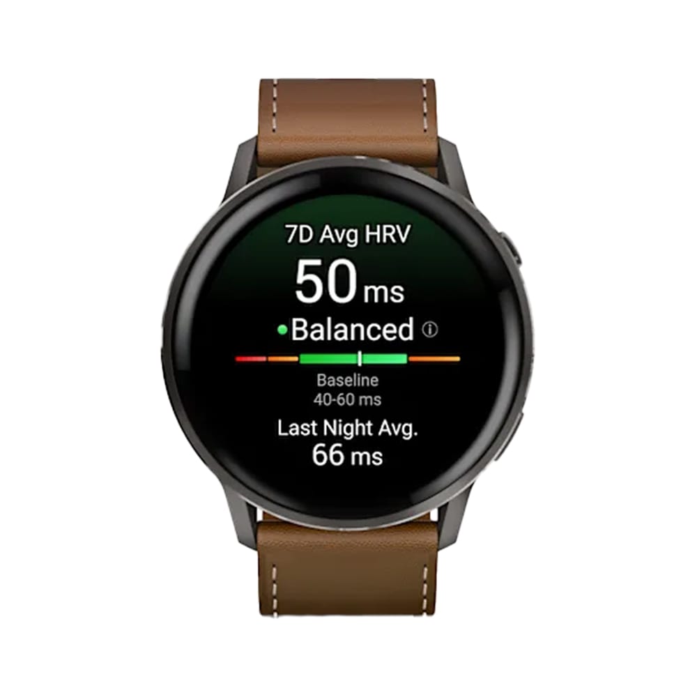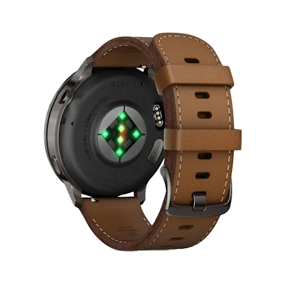 The Garmin Venu 4 (45mm) is a versatile GPS smartwatch with a bright 1.4" AMOLED display and stainless steel bezel. It offers up to 12 days of battery life, advanced health tracking (heart rate, ECG, sleep, stress), and supports over 150 sports modes. The watch also features music storage, Garmin Pay, smart notifications, and a built-in LED flashlight. Designed for both fitness and everyday use, it comes with both silicone and leather bands for easy style switching.