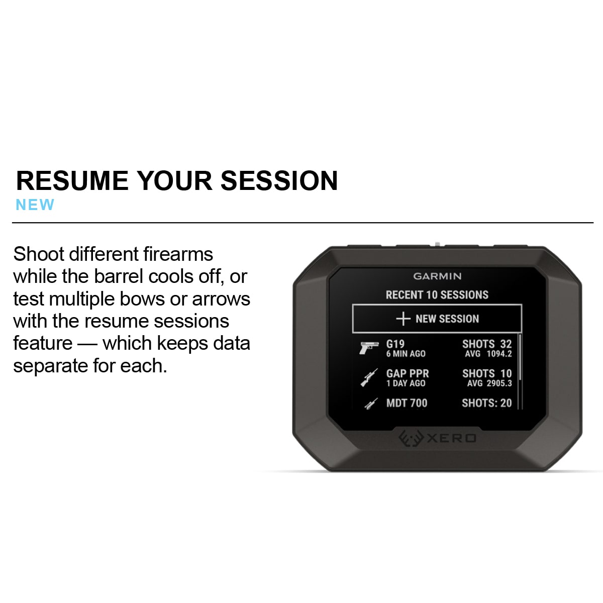 Seamlessly connect to your compatible Garmin smartwatch or smartphone to view live session data, control the device, and send muzzle velocity directly into the Applied Ballistics® solver for long-range solutions. The new resume session feature keeps profiles separate for multiple firearms or bows, while the ShotView™ app lets you manage sessions, analyze deviation, and annotate every shot. Housed in a reinforced, IPX7-rated body and powered for up to 2,000 shots or 6 hours, Xero C2 is built to perform anywhere the range takes you.