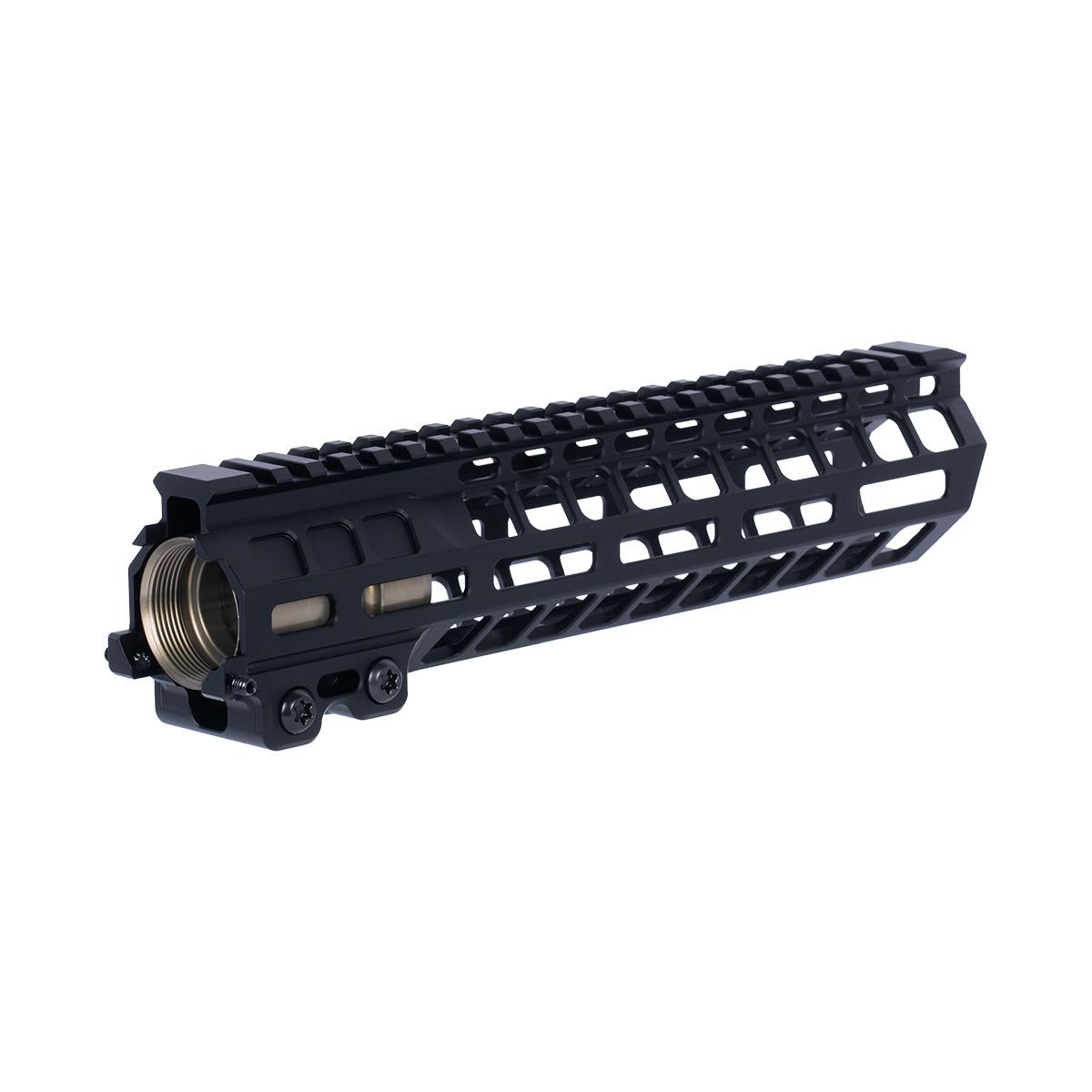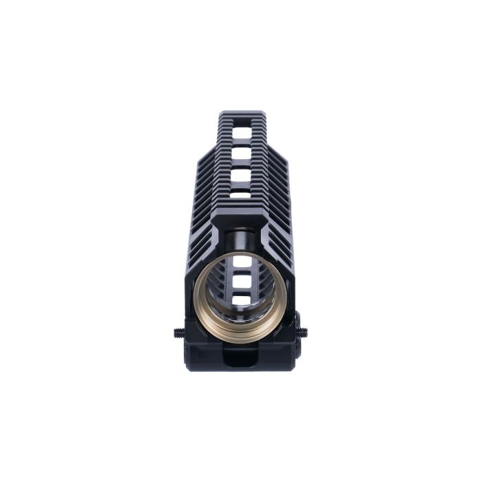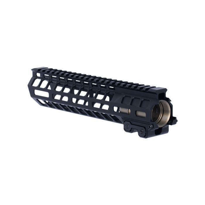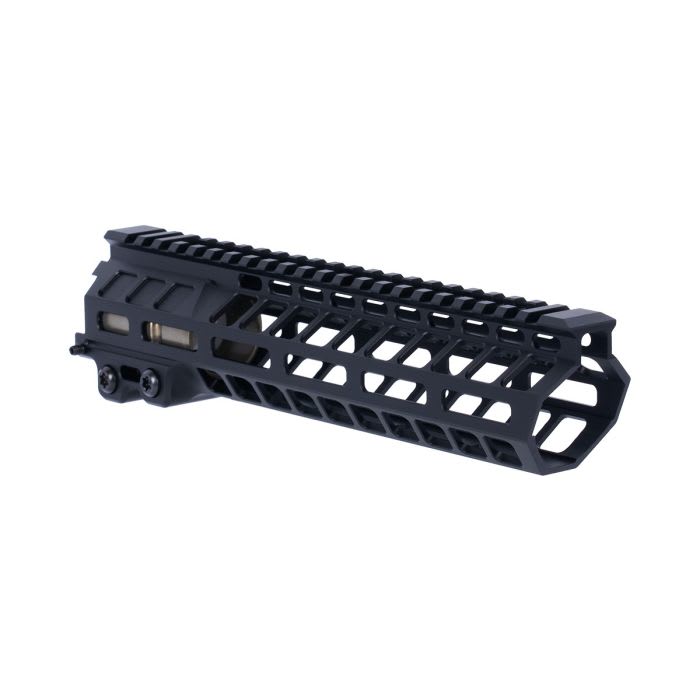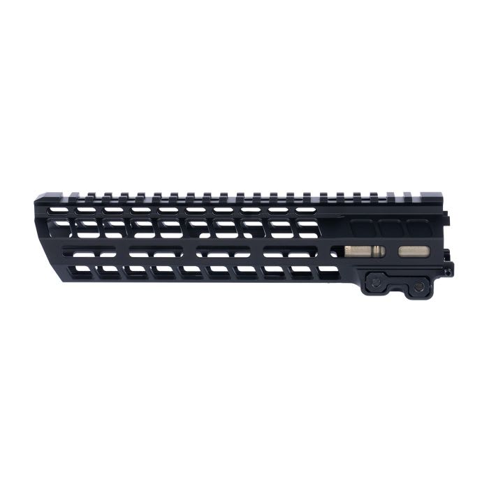 The Geissele 9.6" MK20 Dual Tab Black Handguard Assembly is a lightweight, free-float M-LOK rail system designed for AR-15 pattern rifles. Machined from high-strength 7000 series aluminum and finished in durable Type 3 hardcoat black anodize, this 9.6in handguard provides exceptional rigidity while maintaining a slim profile. The dual anti-rotation tab clamp system secures the rail to the included proprietary Geissele barrel nut, preventing movement under hard use. M-LOK slots at the 3, 6, and 9 o’clock positions allow for flexible accessory mounting, while the full-length Picatinny top rail supports optics and backup sights. With an installed weight of approximately 9.5oz including the barrel nut, the MK20 offers a strong, lightweight solution for builders seeking durability and modularity in a compact rail length.