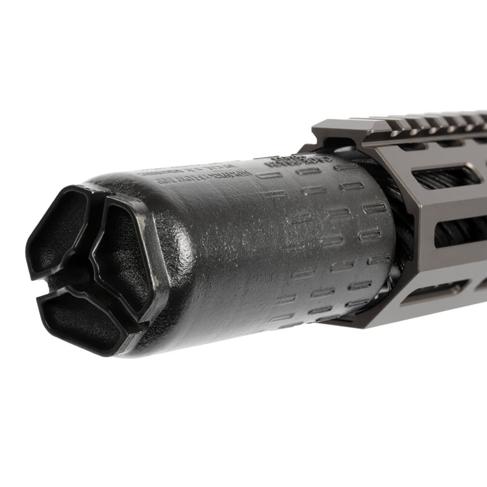 The GFW 8" 300 Blackout HGV (SBR) is a purpose-built, suppressor-optimized platform that blends Geissele's compact GFW architecture with advanced flow-through suppression for exceptional performance and ergonomics. Finished in a distinctive Have Glass V–inspired gray anodizing, this rifle delivers reduced visual signature alongside smooth, reliable operation. Designed around dedicated suppressed use, the system tucks the HUXWRX Flow 300 suppressor partially under the 11" MK22 handguard, maximizing control and hand placement without sacrificing sound and signature reduction.