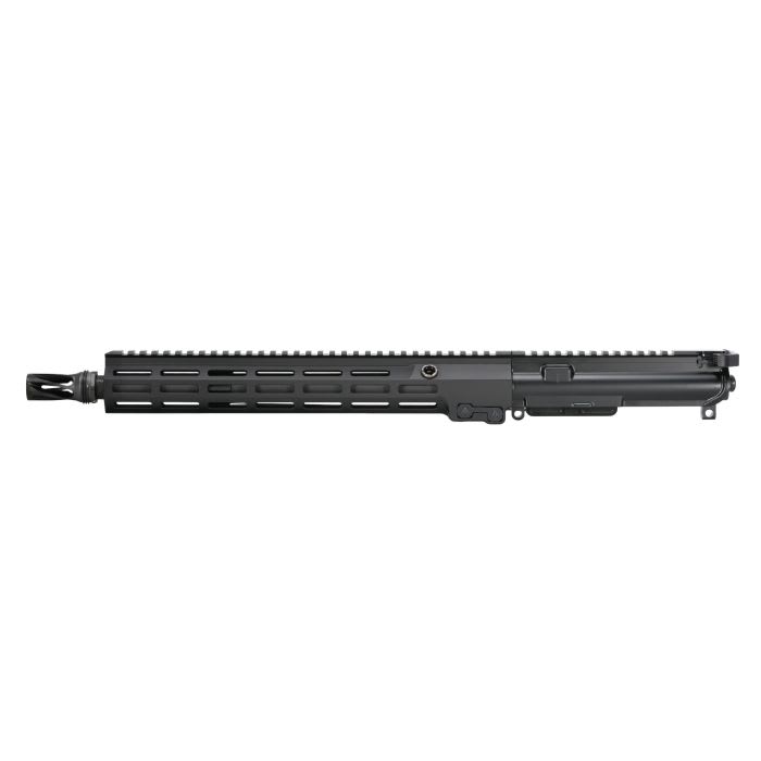 The Geissele Super HBAR MOD1 14.5" Complete Upper in Black is a heavy‐barrel upper receiver assembly built for precision, durability, and hard use on AR-15 style platforms. Featuring a robust .812″ gas journal heavy barrel that is cold hammer forged and chrome lined, it’s optimized for extended accuracy and heat capacity while maintaining reliable cycling via a mid-length gas system and Super Compact gas block. The full-length MK16 M-LOK free-float rail provides a rigid modular platform for optics and accessories, and the upper is compatible with standard AR-15 lowers. Threaded 5/8×24 for muzzle devices, this complete upper is ideal for custom rifle builds where enhanced barrel stability and accuracy are priorities.