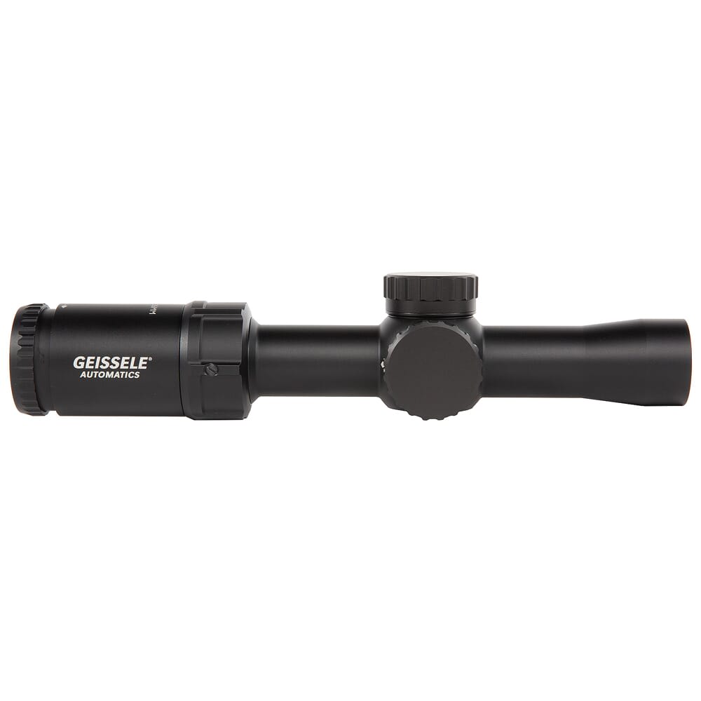 Geissele’s Super Precision 1-6x26mm Riflescope was designed with AR-platforms in mind, and comes fully equipped with Geissele exclusive features. It utilizes the innovative DMMR-1 reticle, which is composed of a precise illuminated center crosshair with half-MIL markings to accurately compensate for bullet drop and wind drift at extended ranges. The reticle also has a range estimation feature – when set to 6x magnification, the DMMR-1 Reticle lets you quickly and effectively range a standard target at a distance of 3, 4 and 5 hundred meters using shoulder width or shoulder to waist ratio. The Super Precision Riflescope’s MIL based increment system also allows the scope to effectively be used with a wide assortment of calibers, and the versatile 1x to 6x magnification range ensures accurate shooting at close to mid-range. In addition, the 26mm objective lens promotes superior light transmission, and premium optics delivers a crystal clear image.
