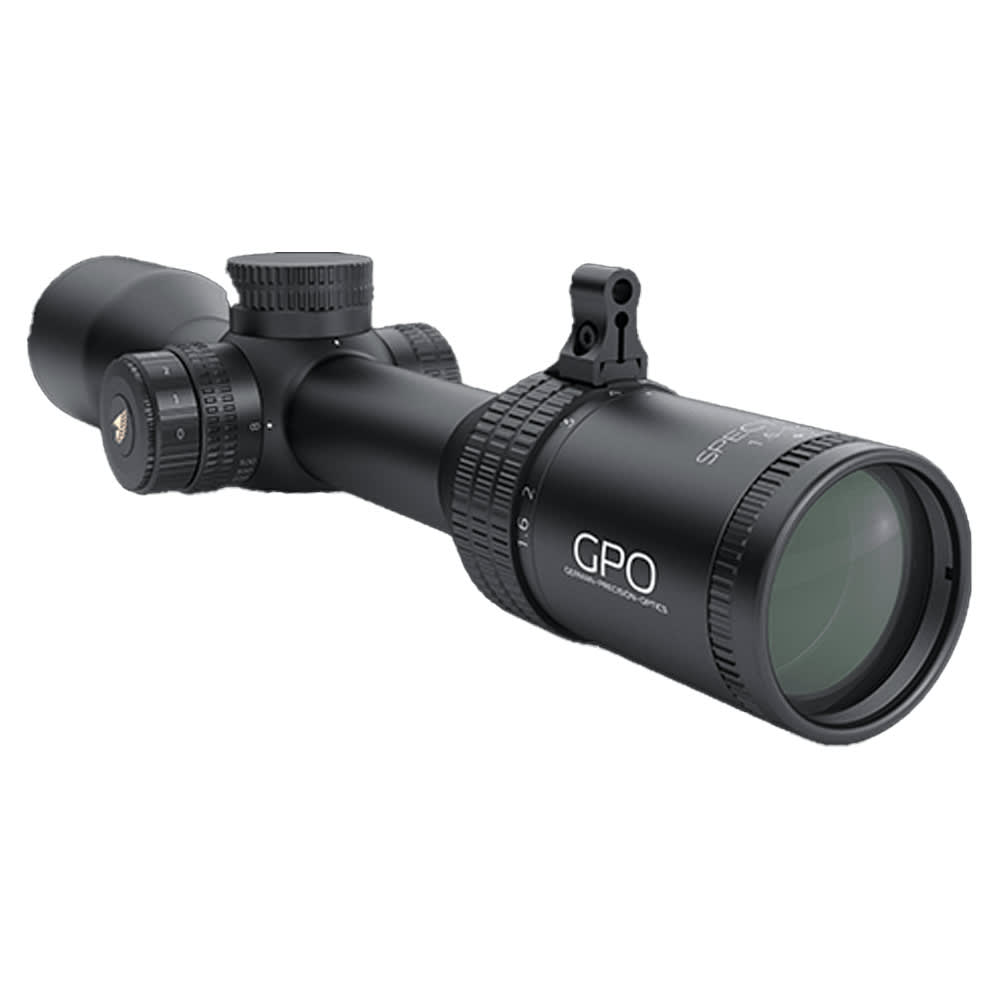 The GPO SPECTRA 1.6‑13×44i is a compact, versatile riflescope built for dynamic shooting scenarios. With an expansive zoom range of 1.6× to 13×, it offers both wide, fast target acquisition and detailed medium‑range precision. The side-focus parallax adjustment beginning at 10m ensures sharp images at close and long distances. Its constant 95mm eye relief and generous exit pupil maintain comfortable viewing across the zoom. The G4i fiber‑illuminated reticle provides brightness control powered by a CR2032 battery, making low light use feasible. At just 308mm in length and 685g in weight, it remains highly portable, while features like tool‑free zeroing, waterproof/fogproof design, and robust construction round out a premium all‑purpose optic.