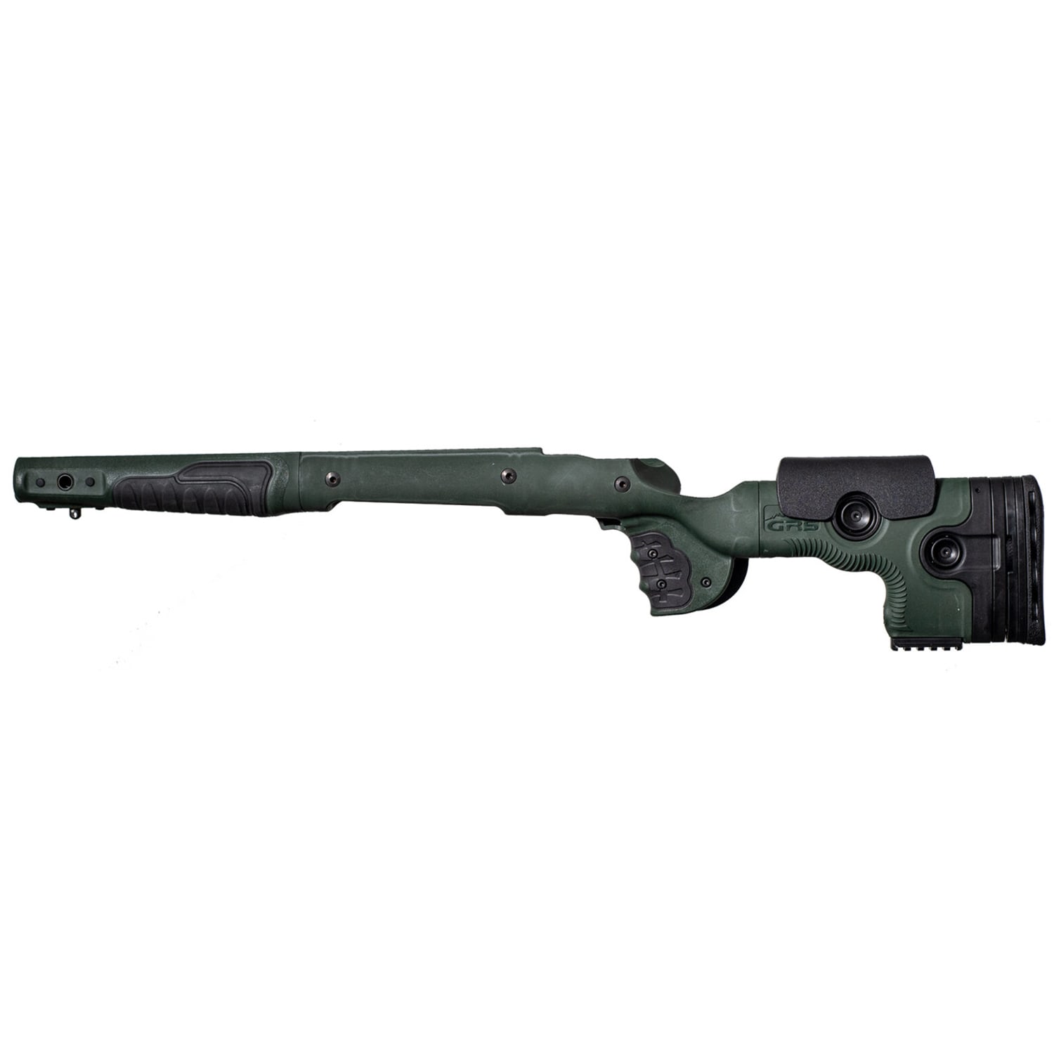 The GRS Bifrost Zoli Green Stock is a durable, ergonomic laminate replacement stock designed for compatible Zoli shotguns. Featuring the GRS SpeedLock system, it offers tool-free adjustment of cheekpiece height and length of pull, allowing a custom fit for shooters. The Zoli Green laminate finish provides a modern look with rugged field durability. This right-handed stock supports standard barrel profiles and is ideal for hunters and sporting shooters seeking enhanced control and comfort. Glass bedding is recommended for optimal accuracy and fit.