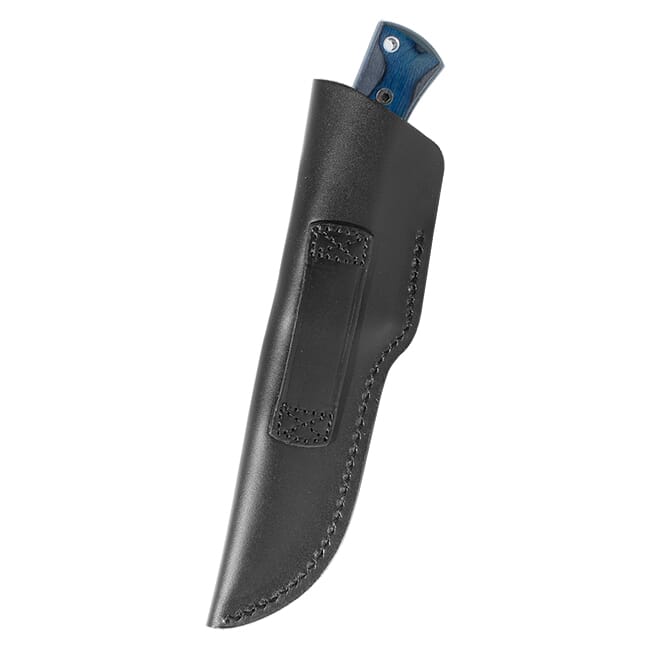 The contoured handle of the GRS Femund is designed to give the user a comfortable but stable grip on the knife and features the same laminated birch wood found on GRS stocks. The hardware on the handle of the knife consists of two large hex bolts, steel tube protecting the lanyard hole, and a polished finger-guard. The GRS Femund’s sheath follows the traditionally Scandinavian deep sheath style that securely holds the knife without the use of a straps or buttons.