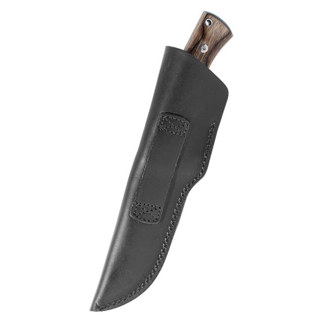 The contoured handle of the GRS Femund is designed to give the user a comfortable but stable grip on the knife and features the same laminated birch wood found on GRS stocks. The hardware on the handle of the knife consists of two large hex bolts, steel tube protecting the lanyard hole, and a polished finger-guard. The GRS Femund’s sheath follows the traditionally Scandinavian deep sheath style that securely holds the knife without the use of a straps or buttons.