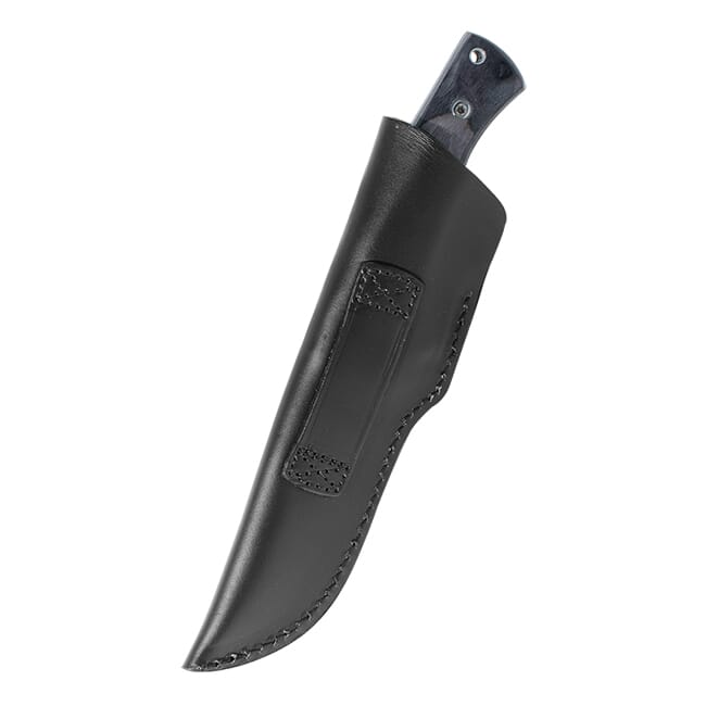 The contoured handle of the GRS Femund is designed to give the user a comfortable but stable grip on the knife and features the same laminated birch wood found on GRS stocks. The hardware on the handle of the knife consists of two large hex bolts, steel tube protecting the lanyard hole, and a polished finger-guard. The GRS Femund’s sheath follows the traditionally Scandinavian deep sheath style that securely holds the knife without the use of a straps or buttons.