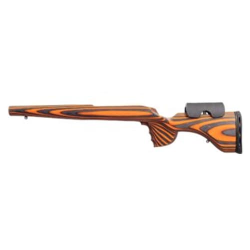 The GRS Hunter Light in Orange/Black is a left‑hand, un‑inletted lightweight composite stock made for gunsmith fitting and custom bolt‑action builds. It features tool‑less cheek and length‑of‑pull adjustment, is non‑folding, and ships as a blank kit (for custom inletting) — typically including basic adjustment tools and an owner’s manual.