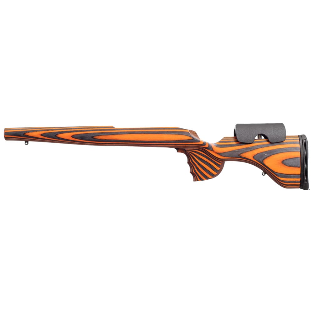 The GRS Hunter Light Weatherby Vanguard SA Orange/Black is a lightweight, ergonomic laminate stock built for Weatherby Vanguard Short Action rifles. It features the GRS SpeedLock II system allowing tool-free adjustment of cheekpiece height and length of pull for a customized fit. The bold orange and black laminate finish offers durability and standout style in the field. Designed for right-handed shooters with standard barrel profiles, this stock enhances comfort, control, and accuracy. Glass bedding is recommended for optimal performance.