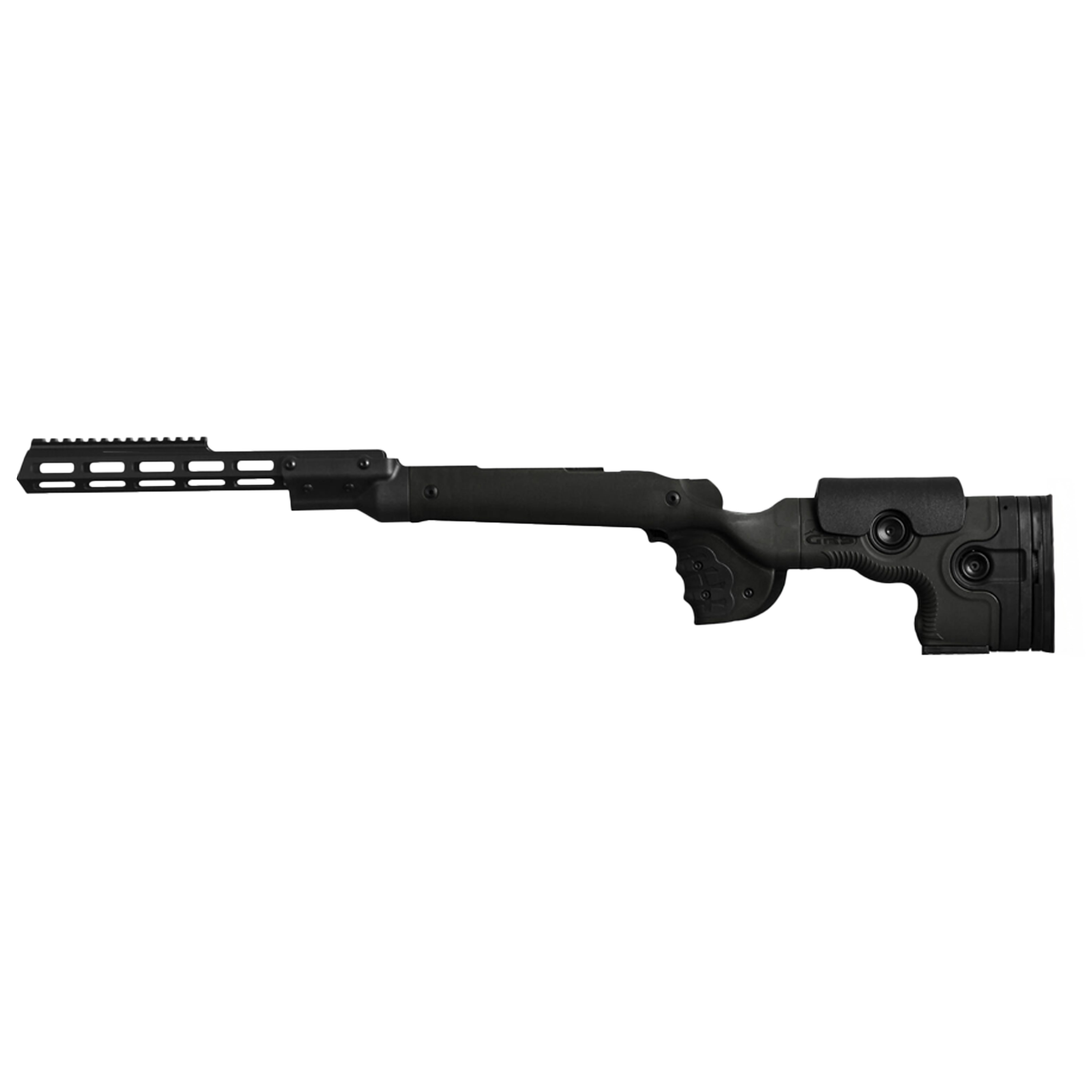 The GRS Warg Zoli 1900 Black Stock is a robust, ergonomic laminate replacement stock designed for Zoli 1900 shotgun actions. It features GRS-style tool-free adjustability for cheekpiece height and length of pull, offering a customizable fit for shooters. The sleek black laminate finish provides a modern, durable appearance suitable for field and sporting use. This right‑handed stock supports standard barrel profiles and is ideal for hunters and competitive shooters seeking enhanced control and comfort. Glass bedding is recommended for optimal accuracy and fit.