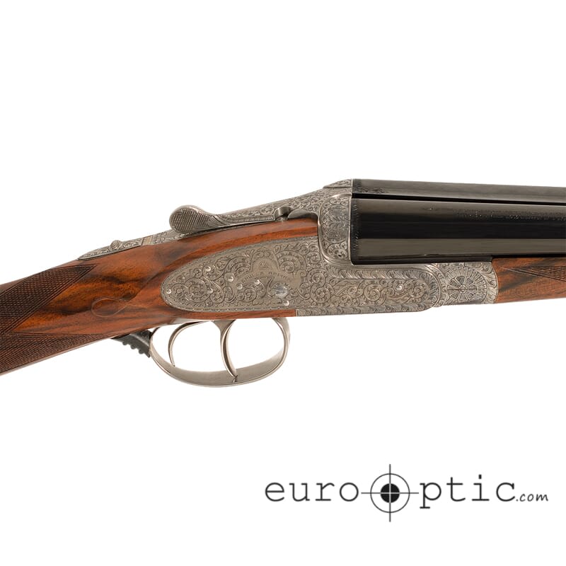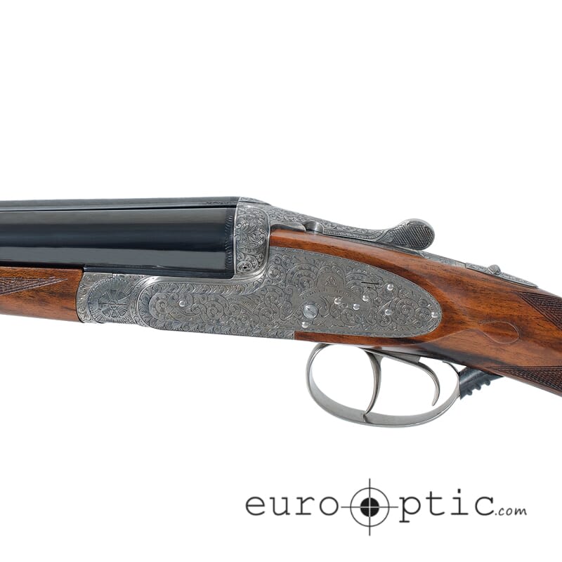 The Grulla Royal shotgun is almost as much an artistic masterpiece as it is a highly functional double barrel shotgun. This Grulla Royal shotgun is chambered in 20 gauge (20-76) and features masterfully blued 28" barrels with improved cylinder/modified cylinder fixed chokes. Grulla Royals have true Holland & Holland (H&H) seven pin sidelocks and utilize the H&H assisted opening round body action.