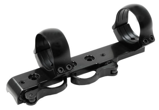 This all steel Gun Star super quick resistant saddle mount with 1" rings can be easily removed with one flip of the tactical lever retaining locking mechanism. It features recoil resistance, heat treated steel base and locks with a blued finish, and aircraft grade aluminum rings. This mount is lower than the traditional twist cam-lock quick release mount and is compatible with all firearms with a Blaser R93, R8, LRS2, K95, or S2 saddle mount system. This super quick release mount is designed to accommodate heavy, demanding applications and is ideal for tactical scopes with large turret boxes.
