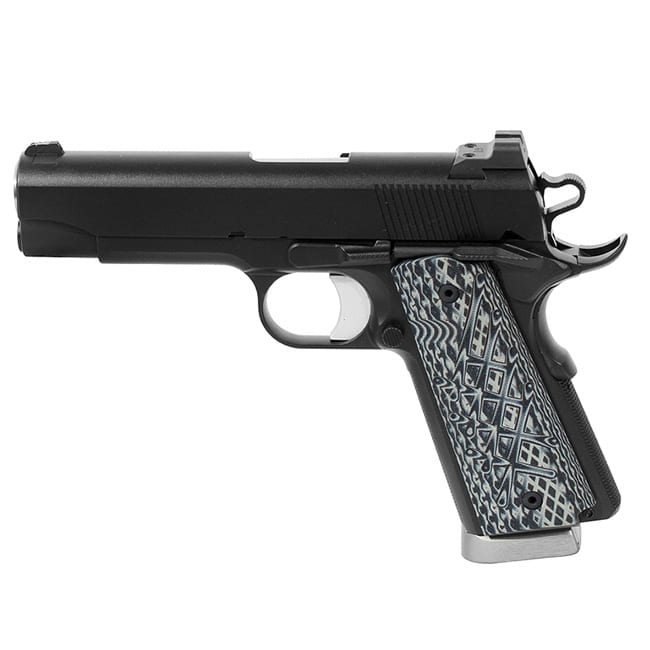 .50GI power in a concealable, compact package. This Guncrafter 50GI Commander feautres a 4.25" heavy match grade barrel, slide stop fully machined from bar stock, full length guide rod, heavy duty flat wire silicone recoil spring, single side thumb safety, high sweep grip safety, beveled magazine well, solid match trigger, front strap 20 line-per-inch carry checkering, shredder grips, GI tritium sights, parkerized finish, and is fully dehorned. Includes two magazines and cordura case with GI logo.