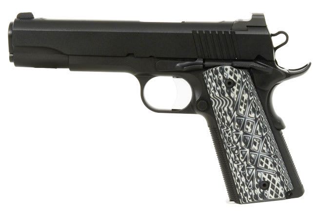 The Guncrafter No Name was inspired by John Browning and his iconic 1911 design. The No Name is simple, functional, with no frills or unnecessary additions. This .45ACP No Name pistol features a 15 line-per-inch x 90° checkering, shredder grips, and Guncrafter ledge tritium rear sight.