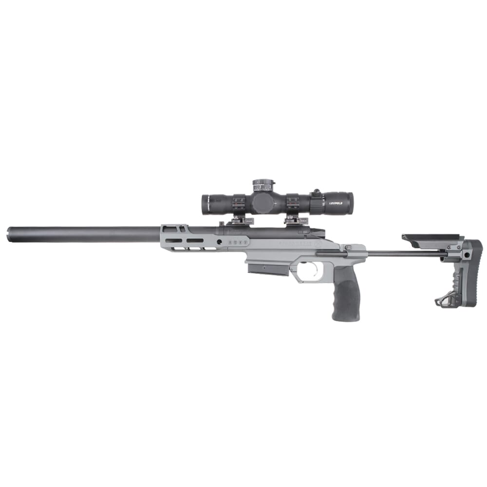 Other features of the Accountant include a JTAC chassis with a collapsible stock. A collapsible stock was specifically chosen over a folding stock to minimize the width of the rifle and allowing the chassis to fit in the case. The Accountant is rounded out with an included Leupold Mark 5 HD Scope which comes equipped with the exclusive Professional-Grade Optical System. This innovative optical design delivers superb light transmission for ideal performance in adverse lighting conditions, as well as industry-leading glare reduction for a clear image in harsh, direct light. The result is unmatched resolution and clarity that professional guides and shooters demand in the field.