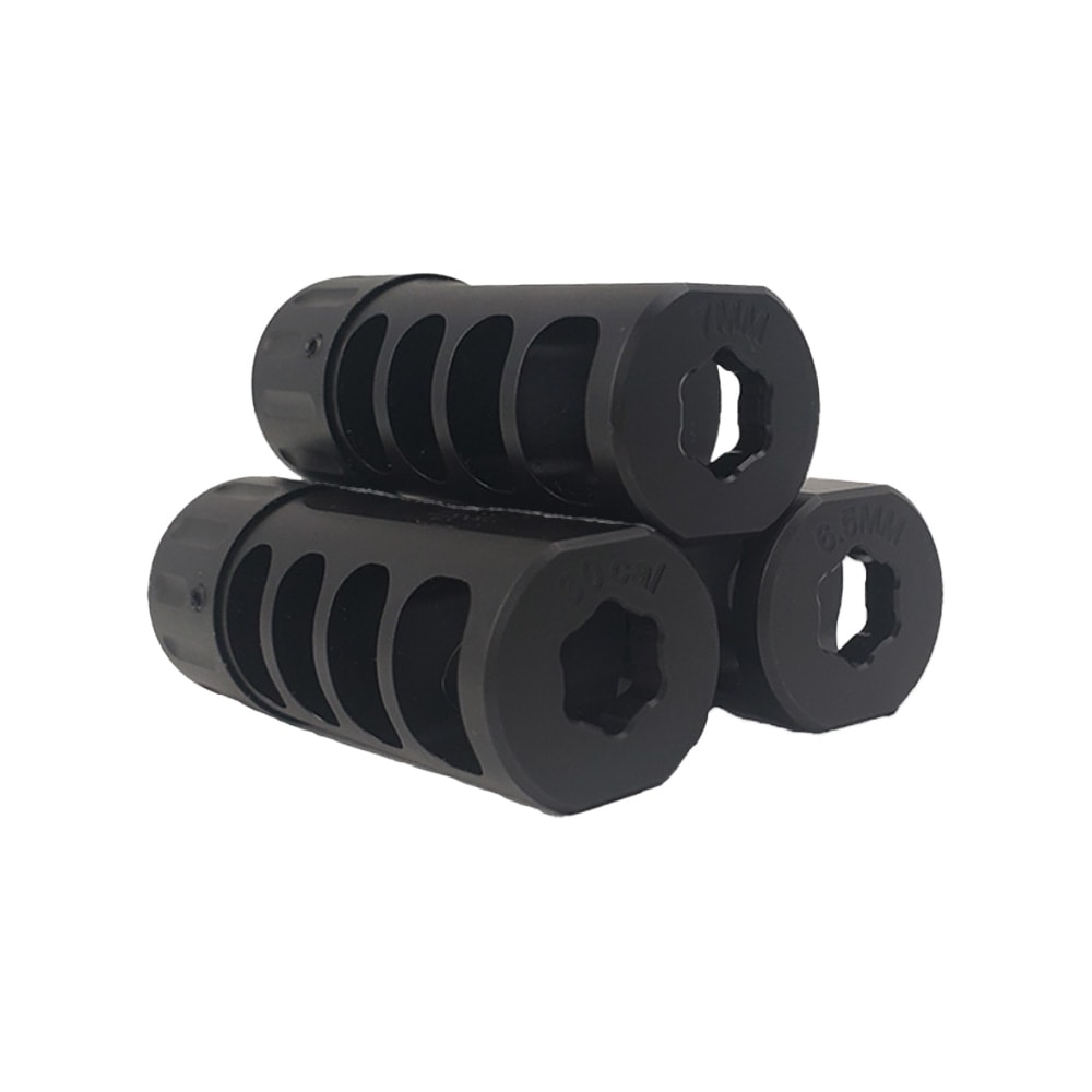 The Hawkins Precision Tank 1.0" Self‑Timing Muzzle Brake is designed to deliver aggressive recoil reduction and muzzle control on 6 mm rifles equipped with 5/8‑24 threaded barrels. Its straight, angled port Tank design redirects gases laterally to significantly reduce felt recoil and keep the rifle flat through the shot, improving stability and follow‑up accuracy. The self‑timing system allows easy installation without shims or gunsmith fitting while ensuring precise alignment. Precision‑machined for durability and consistent performance, this muzzle brake is an excellent choice for competition and precision shooting applications.