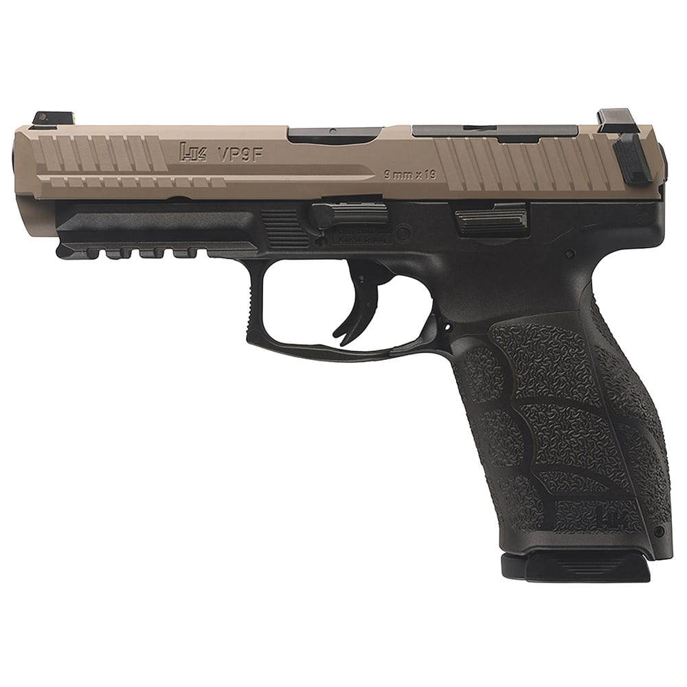 The HK VP9A1 F 9mm features a highly customizable grip system designed to fit a wide range of shooters. It includes interchangeable backstraps and side panels, offering 54 different grip configurations to tailor the pistol’s circumference and length of pull. The grip sports a neutral front strap for enhanced comfort, especially for those with smaller or medium-sized hands, and a textured surface for improved control. Additionally, the flared magwell aids in faster reloads, and ambidextrous controls make it user-friendly for both right- and left-handed shooters. This thoughtful design ensures a comfortable, secure hold for every user.