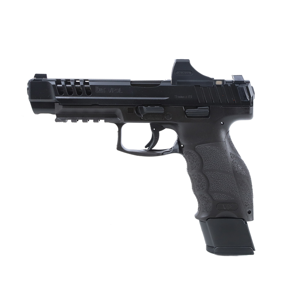 The H&K VP9 Long Slide (VP9L) is a long awaited addition to one of H&K’s most successful pistol designs. The H&K VP9L features a 5 inch barrel with o-ring bushing that can increase the user’s accuracy and give tighter lockup. This handgun is optics ready with an optics cut in the slide with a cover plate, and is available with either standard 3 dot sights or nightlights. The magazines for the VP9L can come in 20 round extendable magazines, 17 round magazines, 15 round magazines, or 10 round magazines for restricted states. The VP9L retains the ergonomic grip and light trigger pull that the VP9 series is known for and features interchangeable backstraps and side panels which can be configured in 27 different ways.