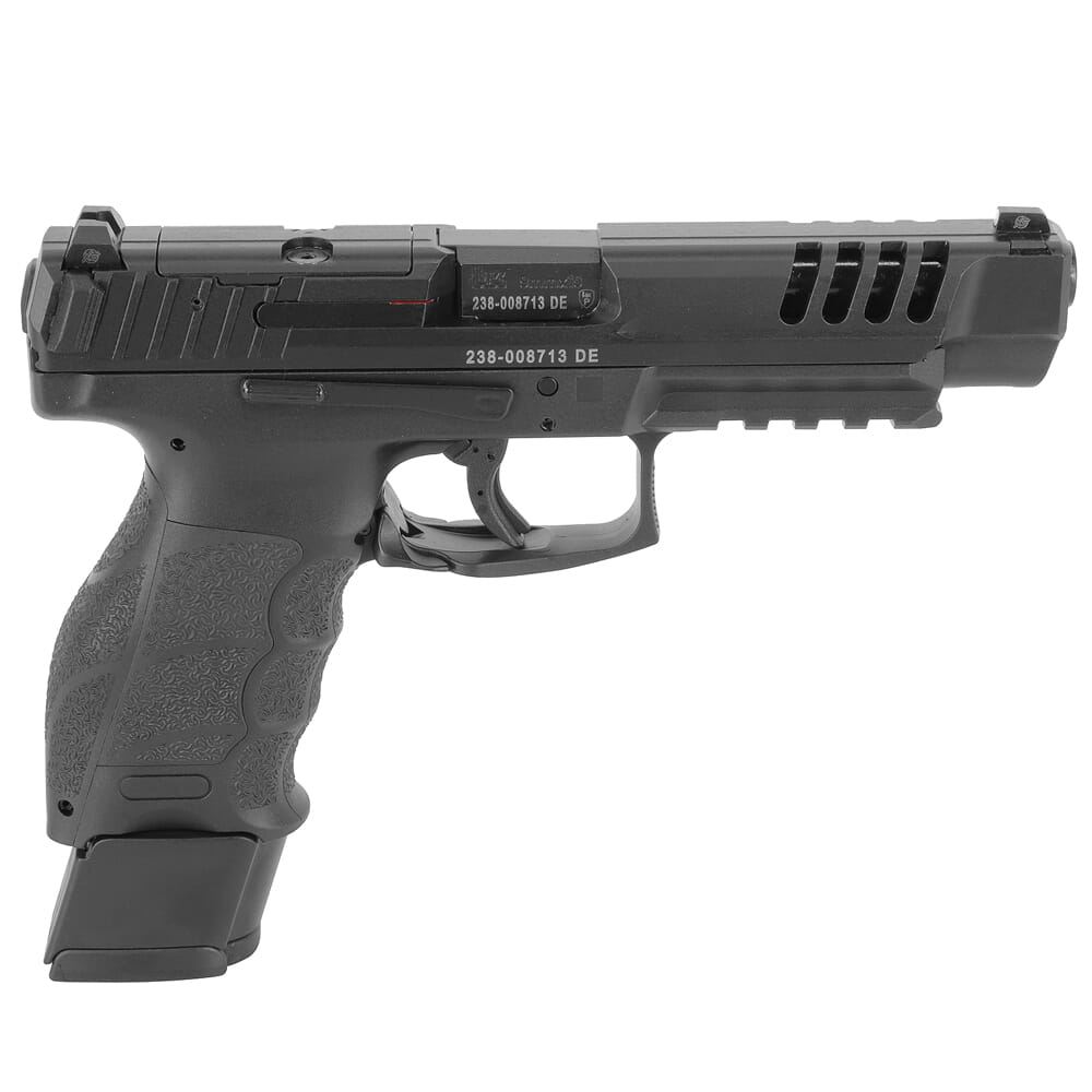 The H&K VP9 Long Slide (VP9L) is a long awaited addition to one of H&K’s most successful pistol designs. The H&K VP9L features a 5 inch barrel with o-ring bushing that can increase the user’s accuracy and give tighter lockup. This handgun is optics ready with an optics cut in the slide with a cover plate, and is available with either standard 3 dot sights or nightlights. The magazines for the VP9L can come in 20 round extendable magazines or 10 round magazines for restricted states. The VP9L retains the ergonomic grip and light trigger pull that the VP9 series is known for and features interchangeable backstraps and side panels which can be configured in 27 different ways.