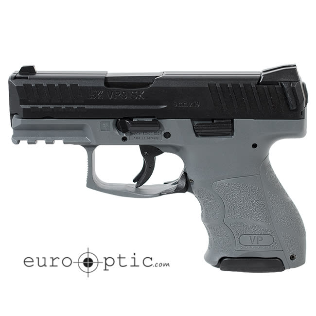 This HK VP9SK comes with a Grey frame and (2) 10 round magazines. The VP9SK also features a scaled down version of the VP adjustable grip feature, allowing the shooter to obtain the perfect grip. Another state-of-the-art feature of the VP9SK is that all of the controls are completely ambidextrous, with slide and magazine releases on both sides of the pistol. In addition the VP9SK has an abbreviated picatinny rail molded into the polymer frame so lights and lasers can be attached with no modifications to the firearm.