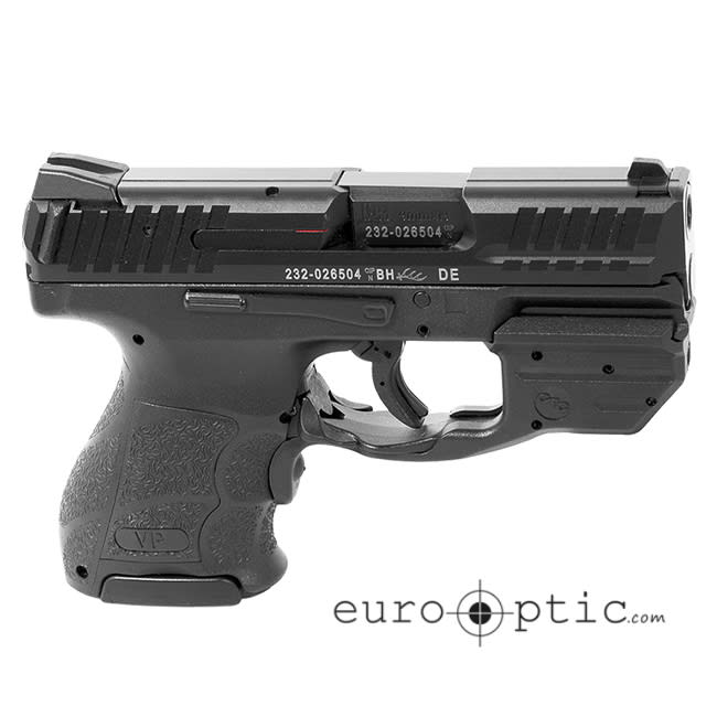 This HK VP9SK with a black polymer frame will ship with a Crimson Trace Laserguard® with a high visibility red laser. The Laserguard® uses an 1/3N lithium battery that will give the shooter over 4 hours of use before a battery change, this fine close-quarters laser will produce a dot size of approximately .5" at 50'. The VP9SK outfitted with the sleek Crimson Trace Laserguard® makes the firearm ideal for both home defense and concealed carry. The VP9SK also features a scaled down version of the VP adjustable grip feature, allowing the shooter to obtain the perfect grip. Another state-of-the-art feature of the VP9SK is that all of the controls are completely ambidextrous, with slide and magazine releases on both sides of the pistol. In addition the VP9SK has an abbreviated picatinny rail molded into the polymer frame so lights and lasers can be attached with no modifications to the firearm.