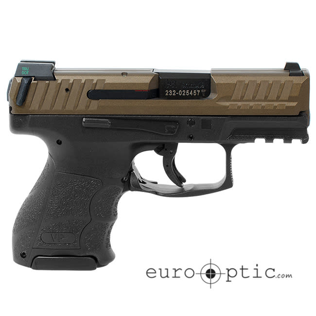 This HK VP9SK comes with a Midnight Bronze frame and (3) 10 round magazines. The VP9SK also features a scaled down version of the VP adjustable grip feature, allowing the shooter to obtain the perfect grip. Another state-of-the-art feature of the VP9SK is that all of the controls are completely ambidextrous, with slide and magazine releases on both sides of the pistol. In addition the VP9SK has an abbreviated picatinny rail molded into the polymer frame so lights and lasers can be attached with no modifications to the firearm.