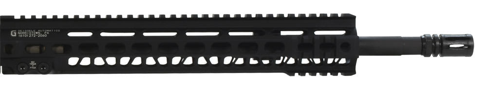This Hodge Defense AU-MOD1 5.56 HDS carbine features milspec forged 7075 type II anodized hard coat, reversible bar stock steel selector, enhanced bolt catch, Magpul MOE trigger guard, milspec mag catch, and a Geissele 13" SMR handgaurd.