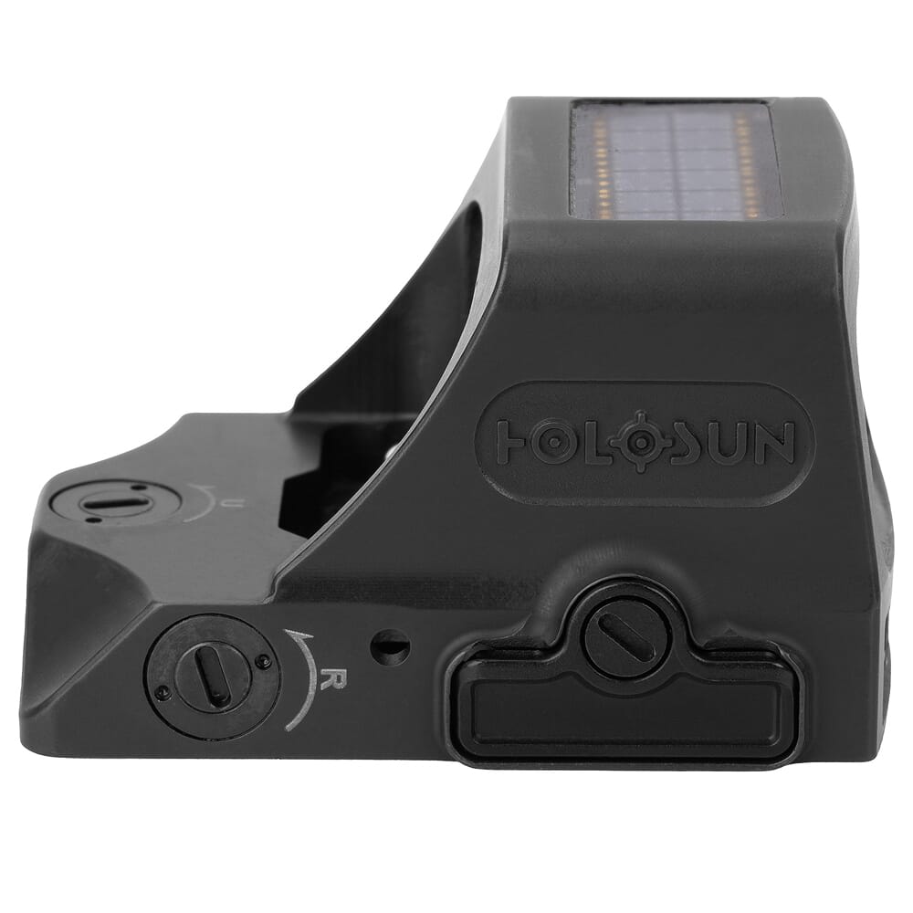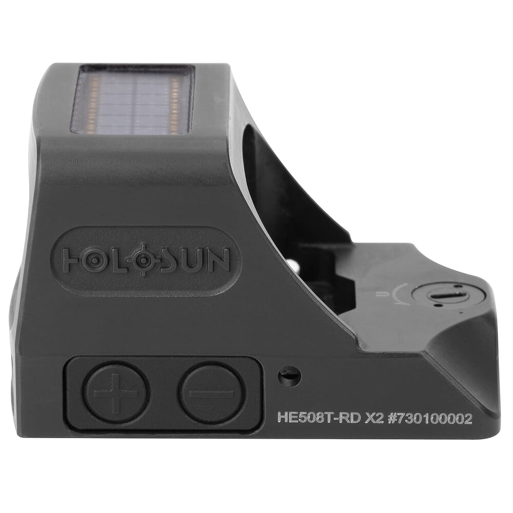 The Holosun HE508 Titanium Multi-Reticle Red Dot Sight was designed with pistol applications in mind and come packed with features right out of the box. The Multi-Reticle system allows the user to select between a 32 MOA Circle, a 2 MOA Dot, and a 2 MOA Dot inside a 32 MOA Circle. The HE508 utilizes Shake Awake technology, an advanced system that activates the sight when movement is detected and deactivates when stationary. This means the HE508 is always at the ready, with no need to fumble with buttons at the critical moment of drawing your weapon. In addition, it uses the common CR1632 battery that lasts up to 50k hours. Even when the battery dies, the HE508 will continue to function thanks to the Solar Fail Safe system, that doubles as an automatic brightness adjustment system; when in bright conditions the reticle will automatically increase brightness and automatically dim in lower light conditions.
