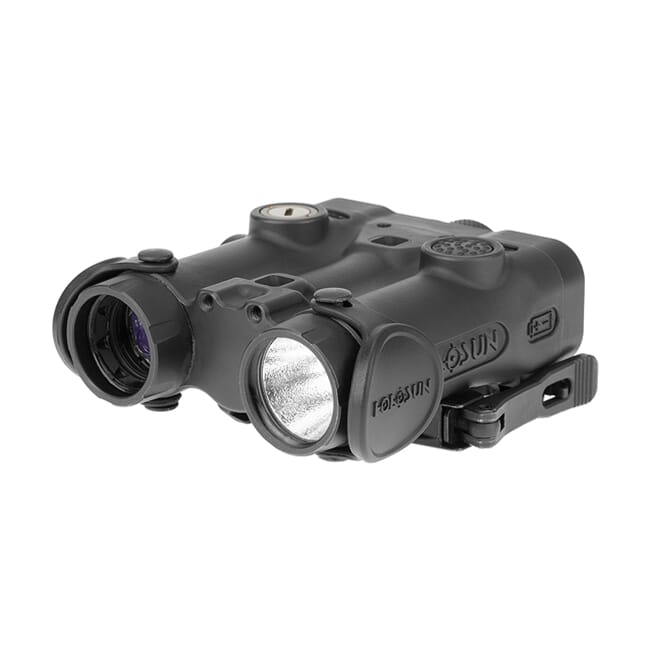 The LE420-GR is a Titanium bodied multi- laser aiming device. Includes class IIIA visible green laser, class 2M IR laser, and IR Illuminator coaxially mounted for easy zeroing. Also features a 600 Lumen white light, IR Illuminator focus adjustment, quick release picatinny rail mount, remote pressure switch, IPX8 water resistance, and is powered by two CR123 batteries for increased run-time.
