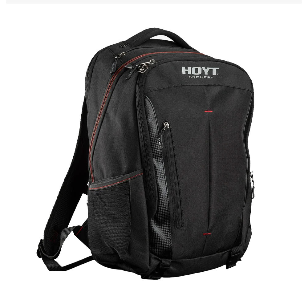 The Hoyt Concourse Backpack is the ultimate solution for archers on the move, offering refined organization and easy transport of all your gear. This backpack features multiple part and accessory pockets, a comfortable lumbar pad, and interior pouches for optimal storage. The stylish black color with red stitching and the raised Hoyt Archery logo add a touch of elegance. With overall measurements of 45.7cm high x 17.8cm deep x 30.4cm wide, the Concourse Backpack is perfect for safely stowing gear, making it ideal for travel, school, work, and vacation. Durable and lightweight, this backpack provides years of service and is a great value for money.