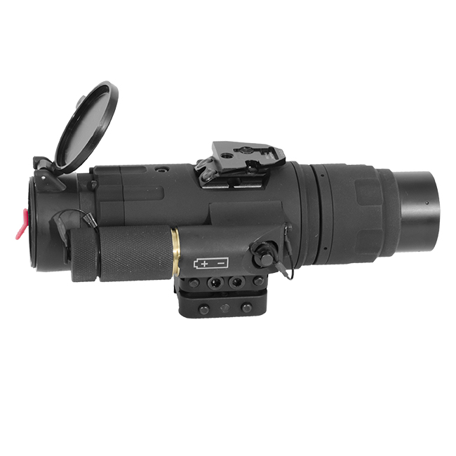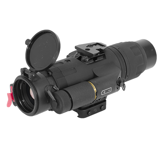 Designed to work with the Trijicon 4x32 ACOG battle sight, the SNIPE-IR performs great with 3x and 4x day optics as well as a large sampling of variable magnification optics. This unit's 640x480 12um Micron VOx sensor allows superior visibility and identification of targets through dust, smoke, and complete darkness. Combined with the Emagin OLED micro display, this thermal unit's ease of use and detail allow the user a superior thermal optic.